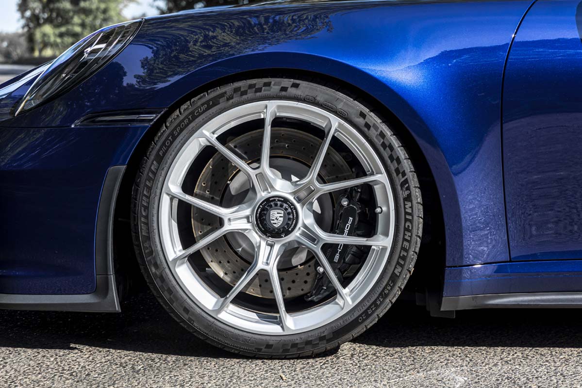 Porsche also offers almost all the optional equipment for the 911 GT3 in combination with the Touring package. This includes all exterior and wheel colours, LED headlights with Porsche Dynamic Light System and Porsche Dynamic Light System Plus, various assist systems, the ceramic brake PCCB, the lift system on the front axle, all seat variants, the Chrono package and the audio systems.