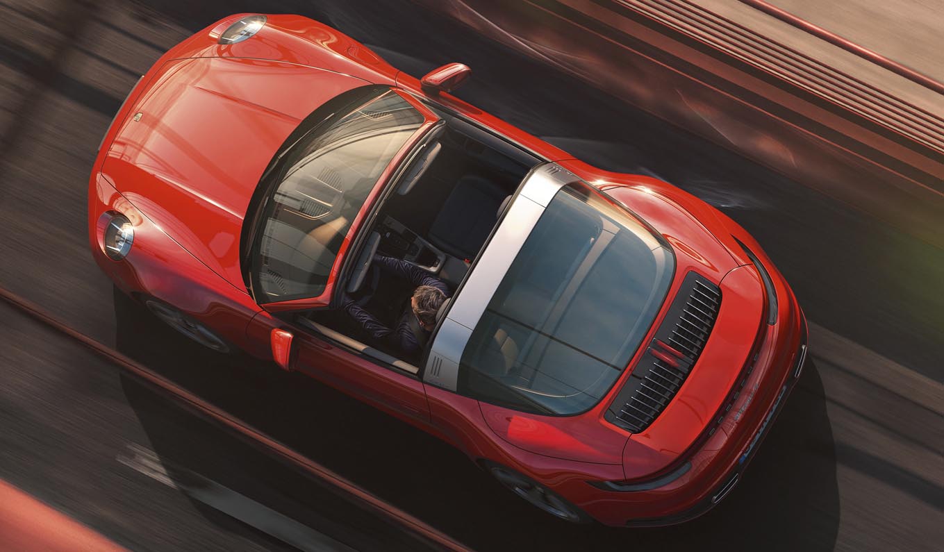Porsche completes its sports car trio in time for summer: following on from the Coupé and Cabriolet, the third body variant of the new 911 generation now makes its debut with the all-wheel drive Porsche 911 Targa 4 and 911 Targa 4S models. The distinguishing feature of the Targa remains its innovative, fully automatic roof system and, just like the legendary original Targa model from 1965, it features a characteristic wide roll hoop, a movable roof section above the front seats and a wraparound rear window. The roof can be comfortably opened and closed in just 19 seconds.