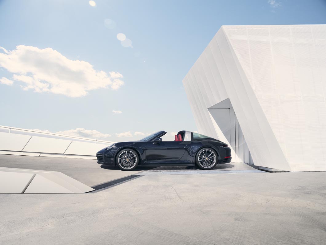 Both sports cars are fitted with eight-speed dual-clutch transmission (PDK) and intelligent all-wheel drive Porsche Traction Management (PTM) as standard to deliver maximum driving pleasure. Alternatively, the 911 Targa 4S can be ordered with the newly developed seven-speed manual gearbox, with which the Sport Chrono package is included. New technology has also been integrated to extend the range of features for both 911 models and, for the first time, Porsche InnoDrive, which includes adaptive cruise control, is available. Thanks to the enhanced Smaltrift function, ground clearance can be programmed so that it is raised for everyday use. The list of options is supplemented by an extensive range from Porsche Tequipment and new personalisation options from Porsche Exclusive Manufaktur. Porsche will further extend the combination of traditional style elements, timeless design and cutting-edge technology in a special edition of the 911 Targa, which will make its debut in June.