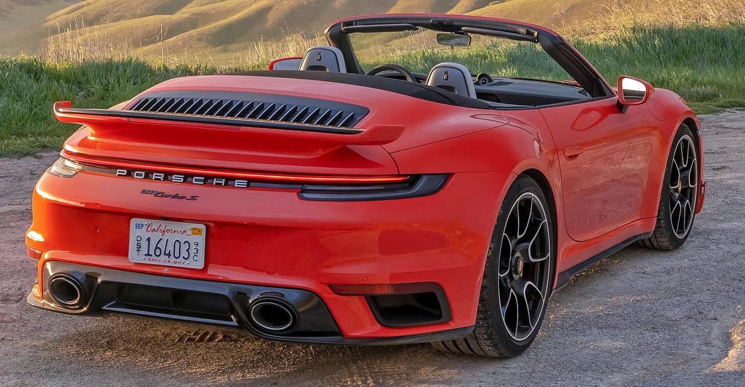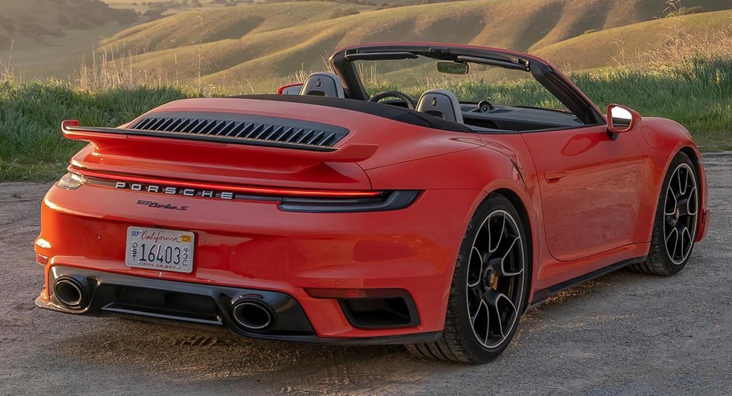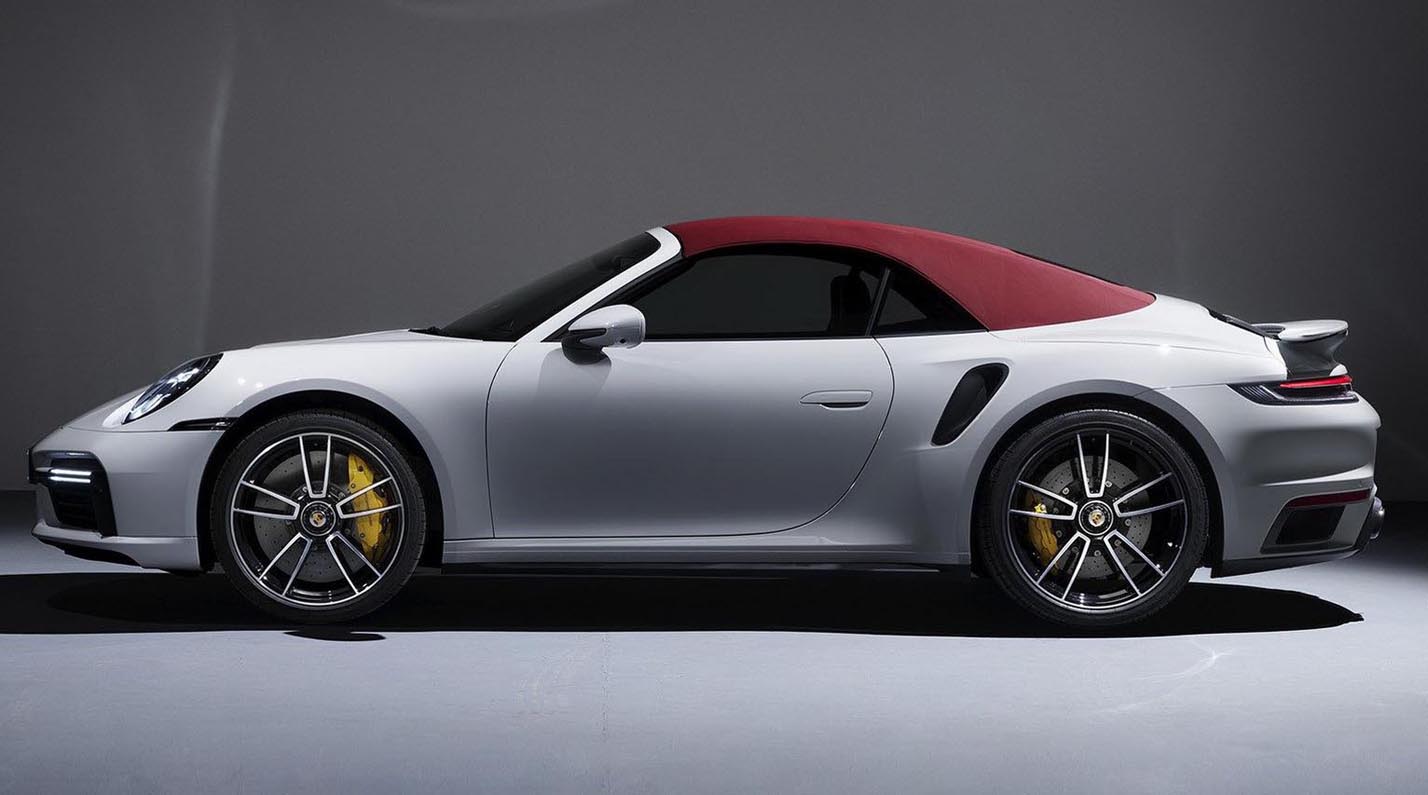 The new front end with wider air intakes has a characteristic Turbo-look with dual front light modules as well as standard LED matrix headlights with dark inserts. The redesigned, pneumatically extendable front spoiler and the larger rear wing deliver 15 per cent more downforce.