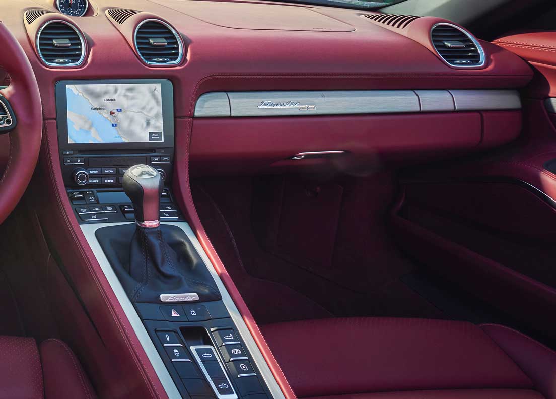 In keeping with the style of the historic original, the special model combines a Bordeaux leather interior with a red fabric convertible top. The convertible top bears embossed Boxster 25 lettering.