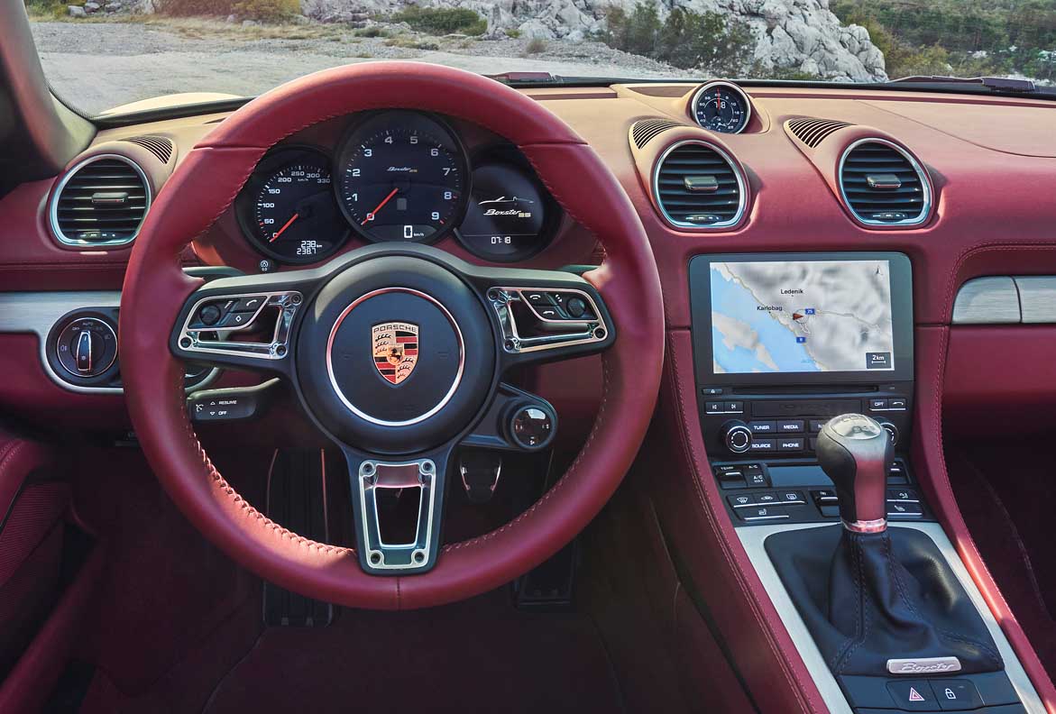 Both are also available in Black. An interior package in Aluminium, 14-way electrically adjustable sports seats, door sill trims with “Boxster 25” lettering and the heated GT multifunction sports leather steering wheel are just some of the features on the new model’s extended standard equipment list.