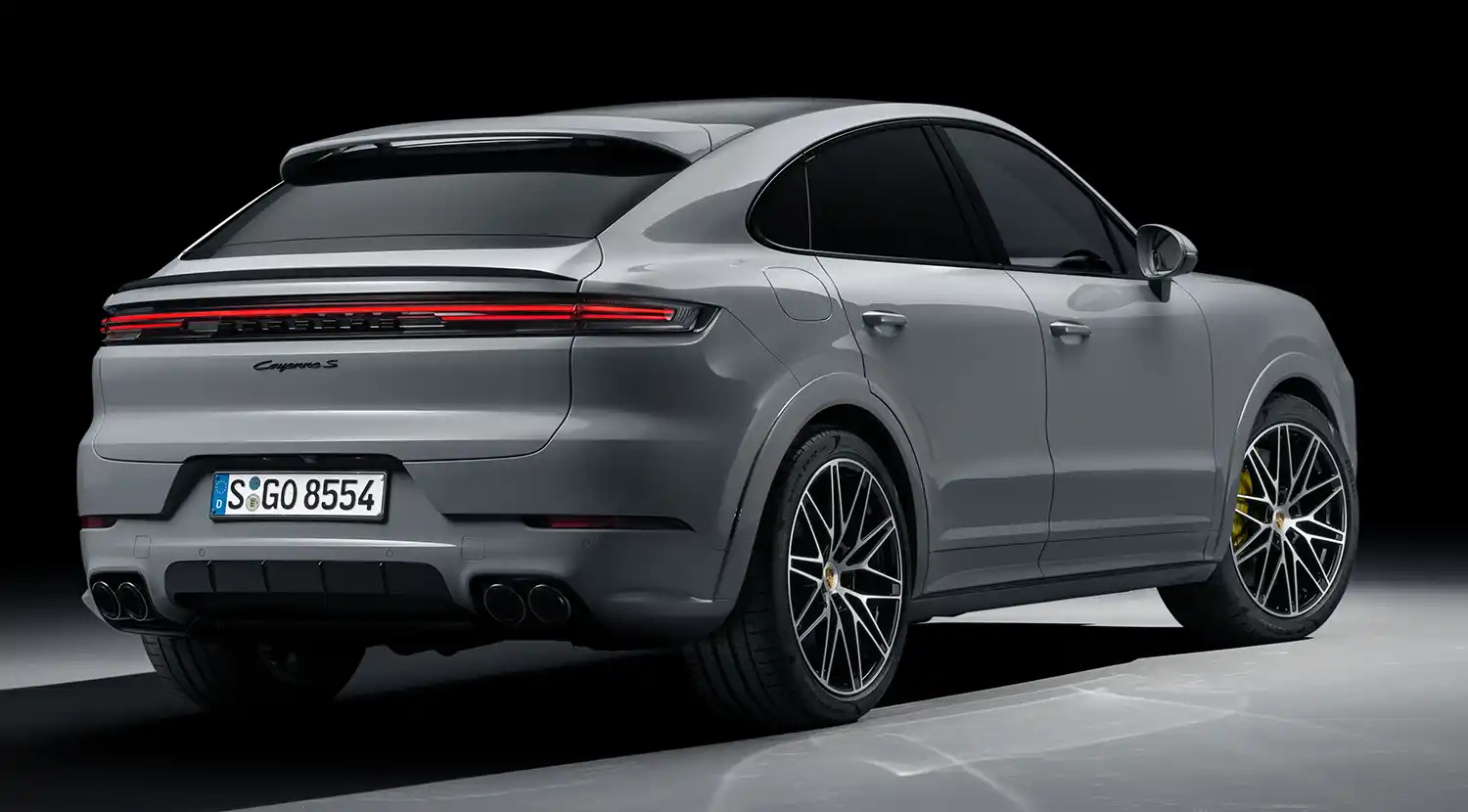 The new Cayenne now has a particularly expressive appearance. A new front end combined with more strongly arched wings, a new bonnet and technically appealing headlights emphasises the vehicle’s width. Three-dimensionally designed tail lights, uncluttered surfaces beneath and a new rear apron with integrated number plate holder characterise the rear end design of the new Cayenne. An expanded colour palette with three new colours, lightweight sports packages saving up to 33 kilograms for the Cayenne Coupé, and a new extensive range of 20, 21, and 22-inch wheels make it possible to individually and dynamically configure the new Cayenne.