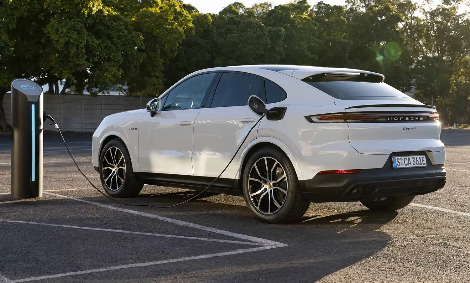 The six-cylinder engine also forms the basis for the powertrain of the Cayenne E-Hybrid. In combination with a new electric motor that has been improved by 30 kW to 130 kW (176 PS), the combined output increases to 346 kW (470 PS). Equipped with a high-voltage battery with a capacity increased from 17.9 kWh to 25.9 kWh, depending on the equipment level, a purely electric range according to the WLTP of up to 90 kilometres is now possible. A new 11 kW on-board charger now shortens the charging time at an appropriate power source to less than two and a half hours despite the increased battery capacity. During the trip, the optimised e-hybrid driving modes increase the efficiency of the vehicle.