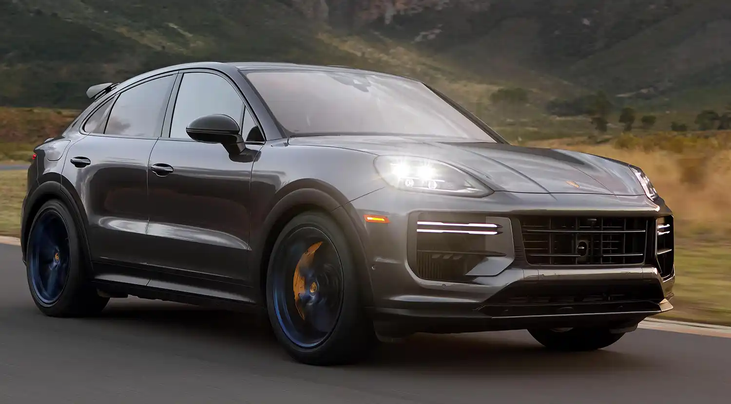 Outside the EU, the Turbo GT designed for maximum on-road performance is still the top model in the Cayenne range in most Porsche markets. It is available exclusively as a coupé and benefits from all the optimisations and innovations of the model series. In addition, the output of the four-litre V8 biturbo engine of the Turbo GT has been increased by 14 kW (19 PS) to 485 kW (659 PS). The Cayenne Turbo GT accelerates from zero to 100 km/h in 3.3 seconds, with a top speed of 305 km/h.