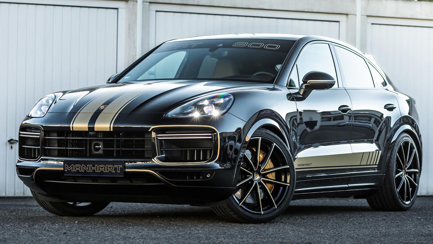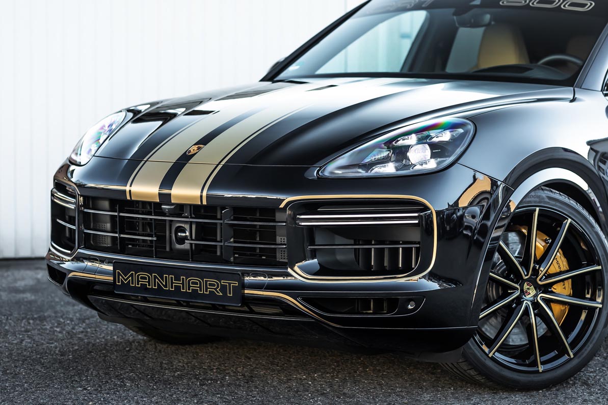 In terms of appearance, MANHART gave the Cayenne Coupé the typical company style. The black-painted bodywork is covered with the golden trim stripes and lettering of the MANHART decal set.