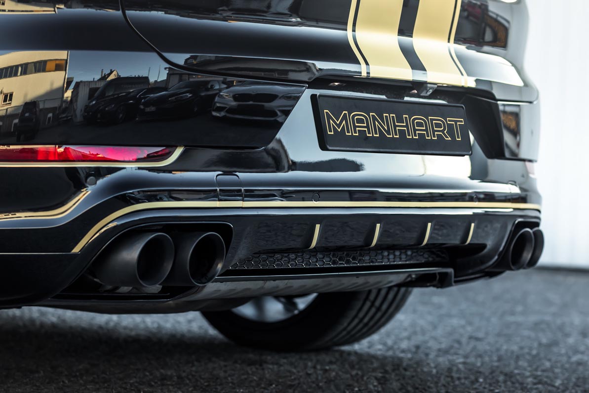 The exhaust system also receives an upgrade in the form of a MANHART rear silencer with valve control and four 100-millimetre tailpipes. The latter are either ceramic-coated or sheathed in carbon.