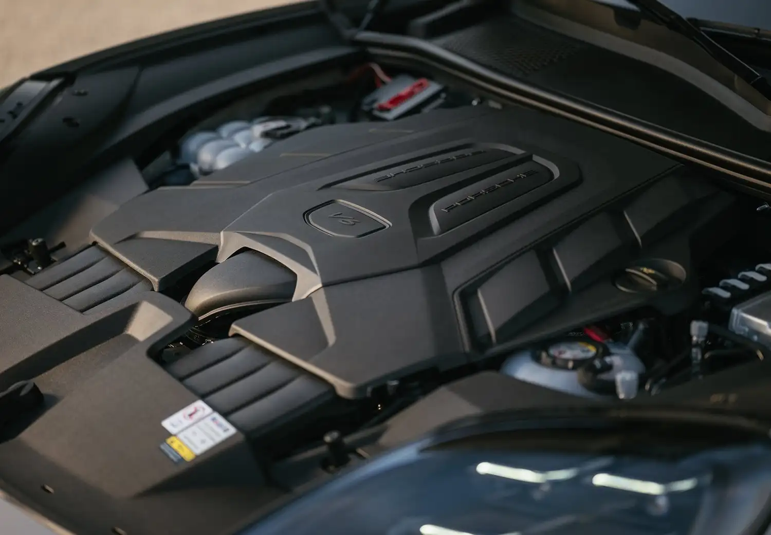 The eight-cylinder twin-turbo has been extensively revised for use in the new Cayenne to reduce fuel consumption and emissions. The switch from a twin-scroll to a single-scroll turbocharger results in higher exhaust-gas temperatures, which reduces fuel consumption in the highly dynamic range. Increased fuel injection pressure to 350 bar improves efficiency, while electrically controlled wastegates boost engine responsiveness. A new two-stage variable valve lift with two cam profiles per valve on the intake camshaft adjusts the valve train depending on the load condition. At low loads, the engine works with short valve opening times and small valve lift, at high power requirements with long opening times and large lift. The fully variable camshaft control Vario Cam Plus also varies the duration of the valve overlap. This improves performance while further reducing CO2 emissions. Optimisations to the piston rings and piston cooling also promote the robustness of the powerful eight-cylinder engine.