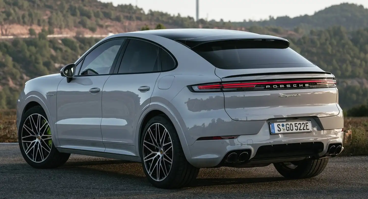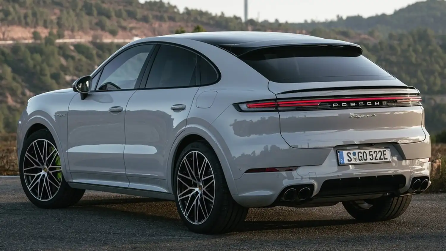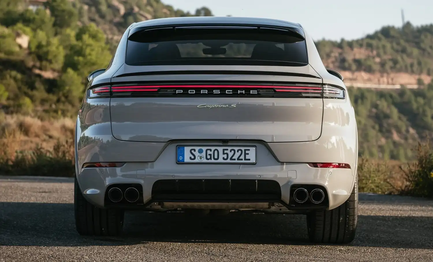 The design of the Porsche Cayenne S E-Hybrid underscores its positioning. It features the 20-inch alloy wheels from the Cayenne S, with 20-inch AeroDesign wheels available as an option. The model also takes the two twin tailpipes of the exhaust system in brushed stainless steel on the left and right from the Cayenne S. The standard equipment also includes the Silver exterior package in the SUV and the Black exterior package in the Coupé, as well as pedal pads in stainless steel, the Sport Chrono package including a new mode switch for quick selection of driving modes and a central tachometer on a black dial in the digital 12.6-inch instrument cluster.