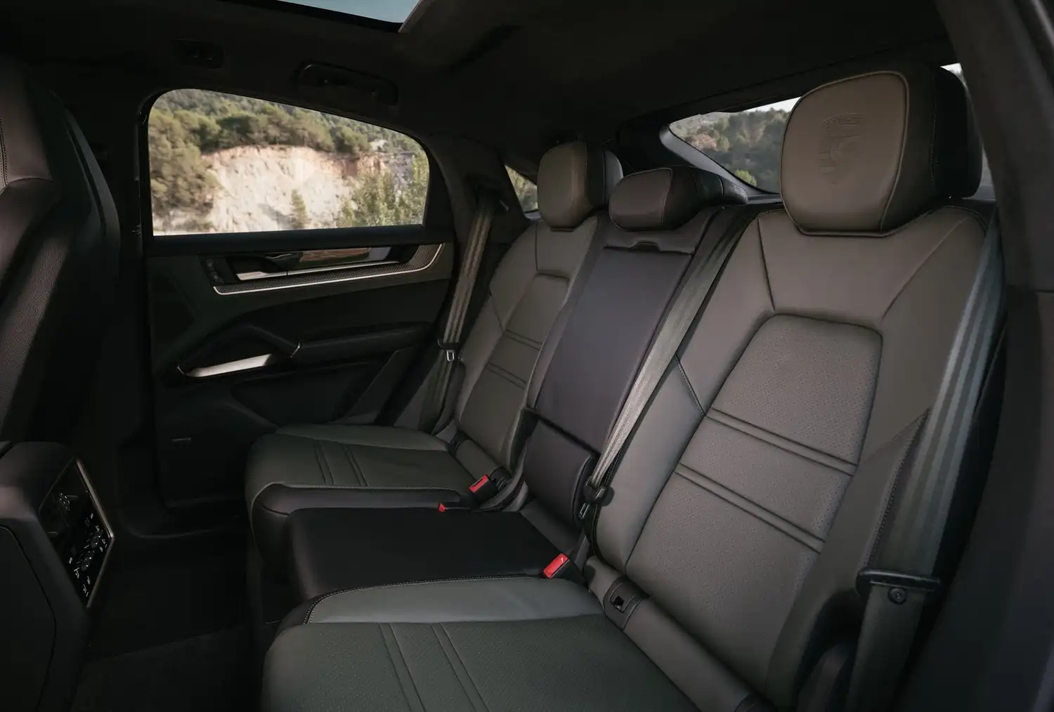The exhaust system used exclusively on the Turbo models, with two twin tailpipes in brushed stainless steel on the left and right of the rear section, further emphasises the model’s performance-focused character. The design of the one-piece, 21-inch alloy wheels in the Cayenne Turbo design in Dark Titanium (glossy) is also reserved for the Turbo models. As in all the E-Hybrid variants, there is a choice of Acid Green brake callipers instead of the standard red brake callipers. The standard equipment in the Turbo E-Hybrid models includes the new HD-Matrix LED headlights. Along with the Coupé, the Cayenne SUV also has active aerodynamics: the spoiler on the edge of the roof automatically extends at higher speeds to increase driving stability.