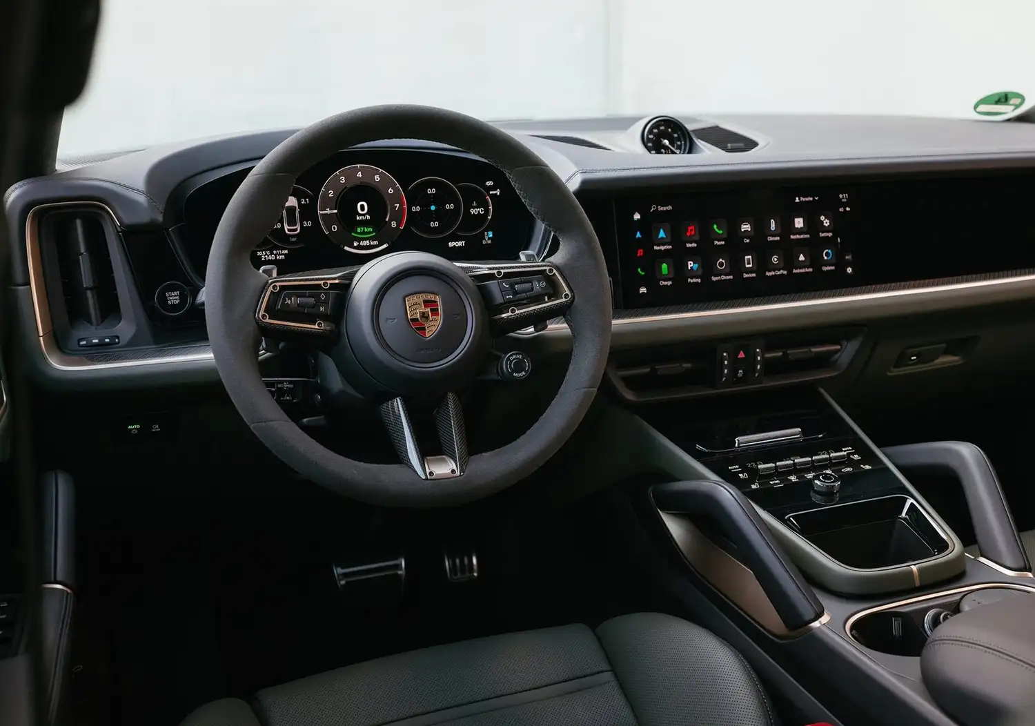 Inside, all the new Cayenne models have an emphatically driver-oriented control concept. Functions with a direct impact on driving are located directly on or immediately next to the steering wheel. The driver now operates the assistance systems via a driver assistance lever on the left side of the steering wheel. The automatic gear selector lever is to the right of the steering wheel on the dashboard.