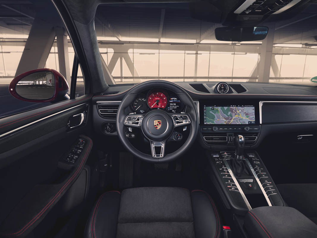 High-quality materials such as Alcantara® on the seat centre panels, the centre console armrests and door panels as well as brushed aluminium make it possible to also see and feel the sporty and elegant characteristics of the Macan GTS in the interior.