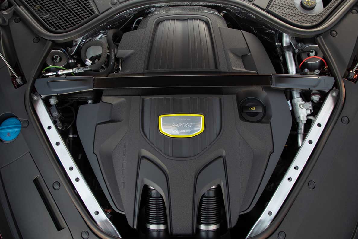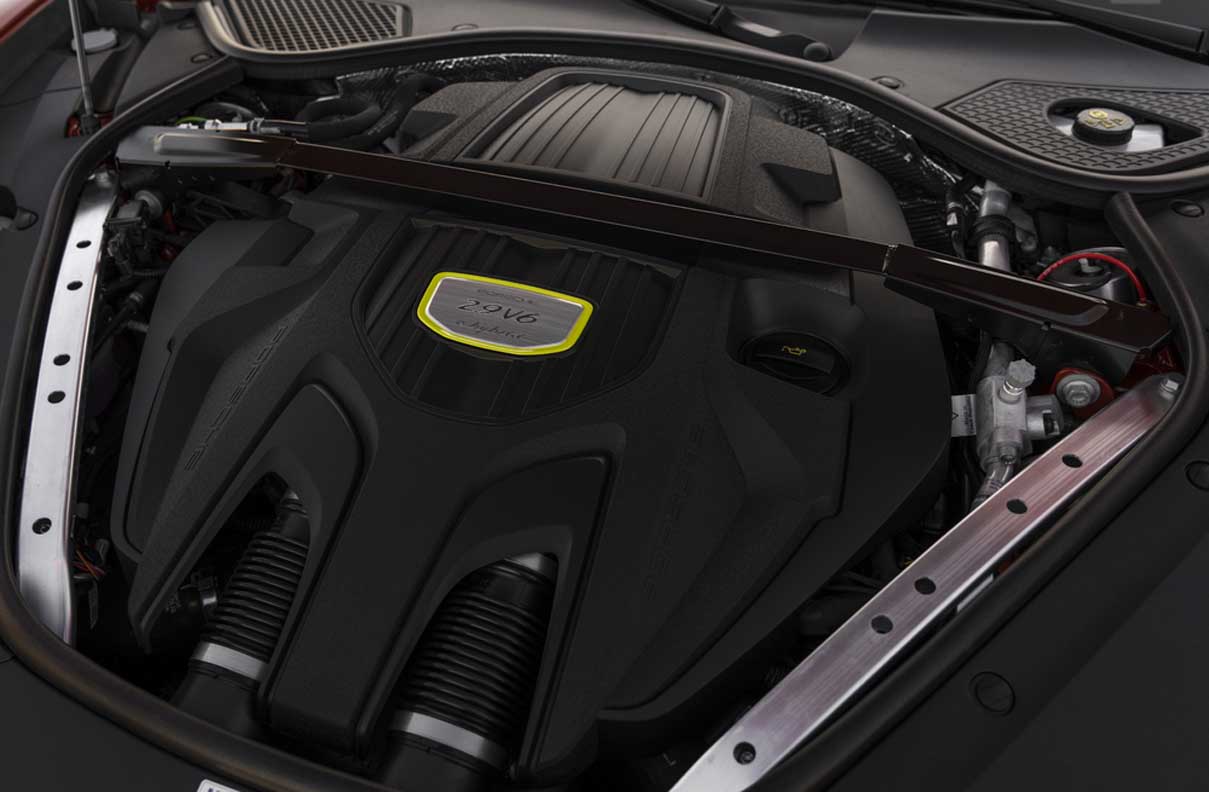 With a system power output of 340 kW (462 PS), the Porsche Panamera 4 E-Hybrid is the entry-level model in the hybrid family of this product line. The electric motor works together with a 2.9-litre V6 biturbo engine with an output of 243 kW (330 PS) and performance has been improved compared with its predecessor: the Porsche Panamera 4 E-Hybrid accelerates from a standing start to 100 km/h in just 4.4 seconds (-0.2 s); top speed is 280 km/h (+2 km/h).