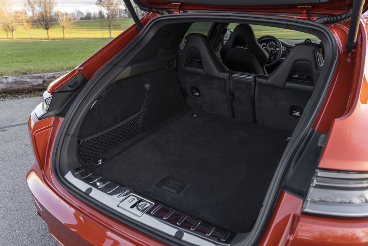 The electric motor draws its energy from a high-voltage battery installed at the rear of the car. To achieve a long electric range and extend the reserve capacity for electric boosting, the battery’s gross capacity has been increased from 14.1 to 17.9 kWh compared with the previous hybrid models thanks to optimised battery cells. This corresponds to an increase of exactly 27 per cent. The installation space for the battery beneath the load compartment floor remains compact, providing spacious luggage capacity from 403 to 1,242 litres in the sports saloon (Sport Turismo: 418 to 1,287 litres). The additional optimisation of its driving modes has made it possible to increase electric range by up to 30 per cent. The new Panamera Turbo S E-Hybrid can be driven with zero local emissions for up to 50 km according to WLTP EAER City (NEDC: up to 59 km), while the 4S E-Hybrid can cover up to 54 km according to WLTP EAER City (EDC: up to 64 km). The new Porsche Panamera 4 E-Hybrid is particularly efficient and has an all-electric range of up to 56 km according to WLTP EAER City (NEDC: up to 64 km).