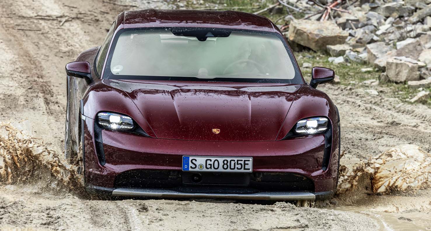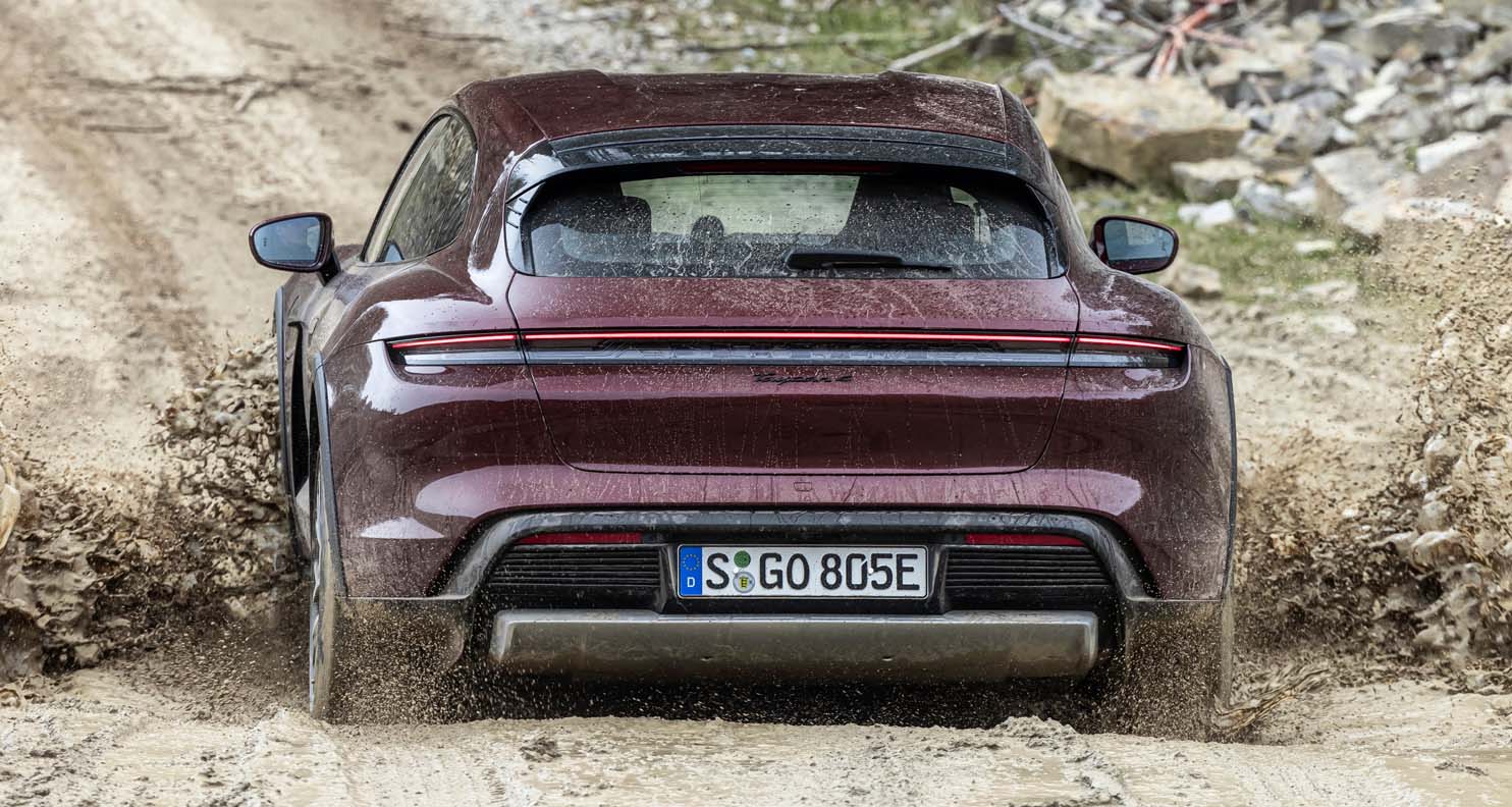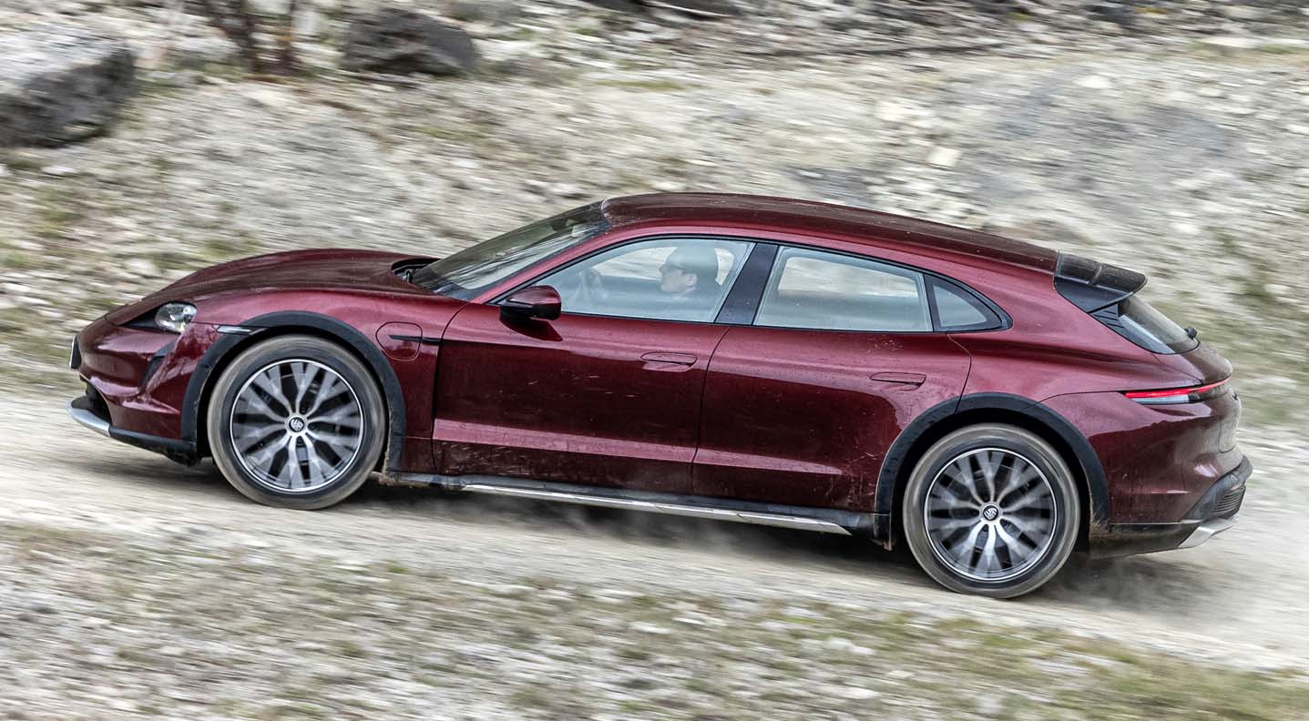 The Porsche Taycan Cross Turismo is the first all-electric Cross Utility Vehicle (CUV). Its potential to drive both on- and off-road are clearly signalled by its ride height. The Taycan Cross Turismo is approximately 30 mm higher off the ground than the Taycan saloon.