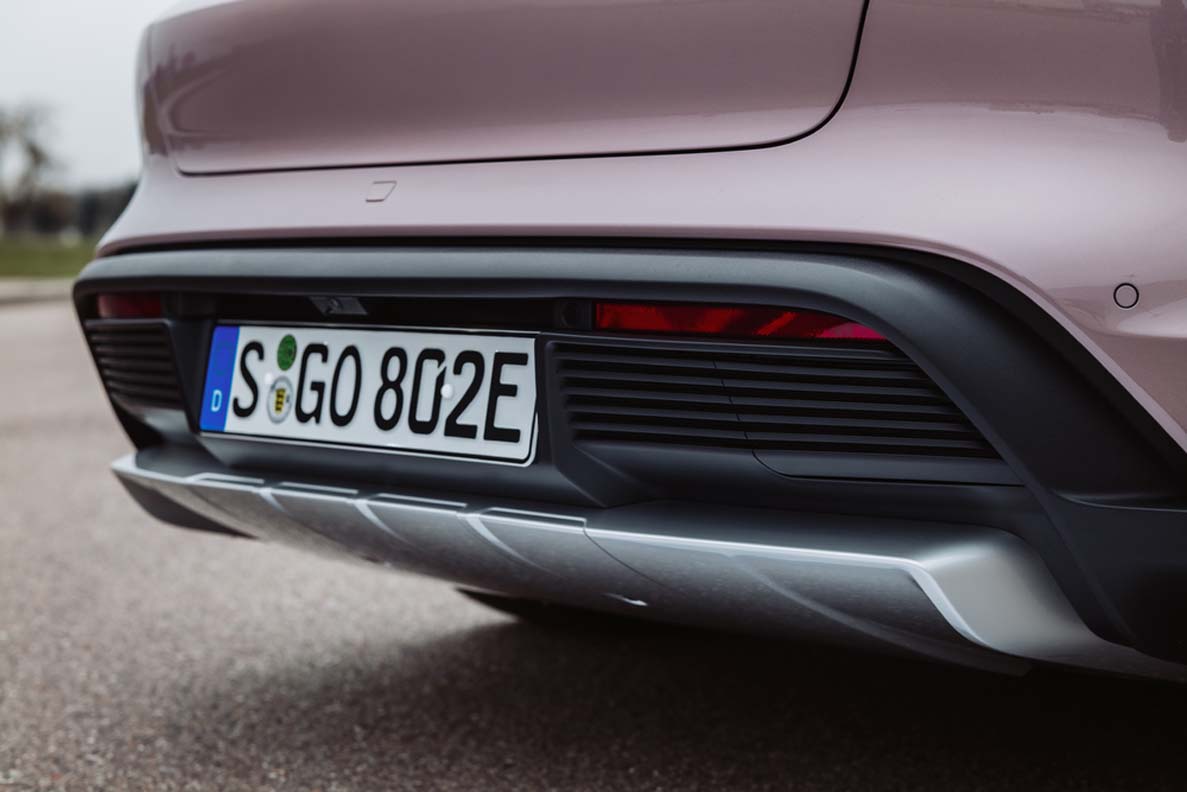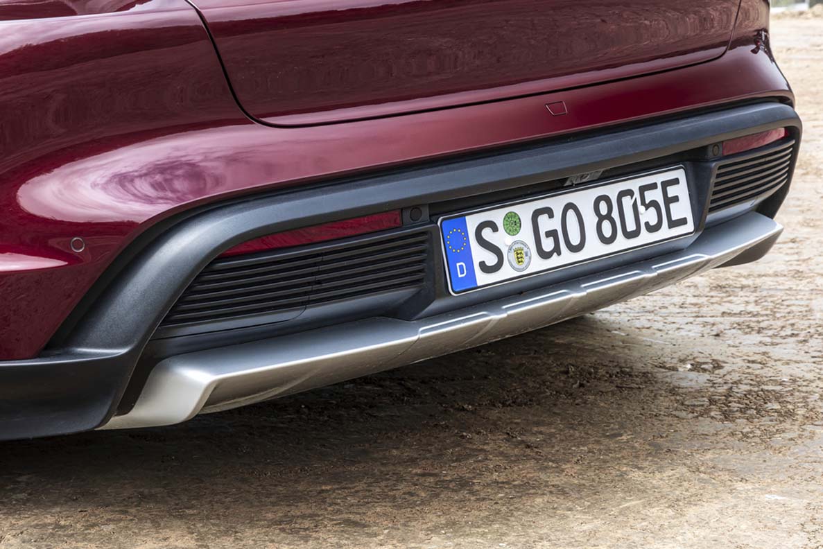 The Cross Turismo-specific rear diffuser features a louvred design and underlines the ambitions of the Taycan Cross Turismo to cut a dash both on- and off-road.