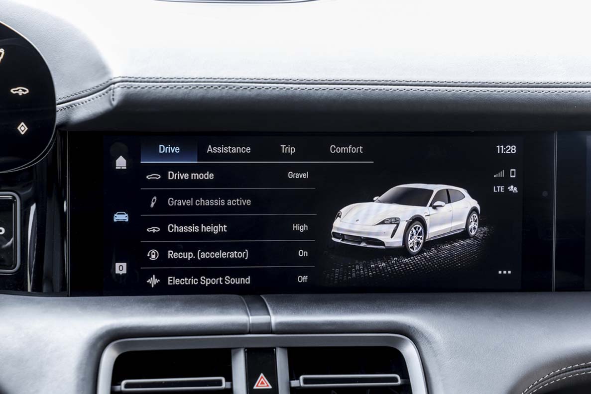 All vehicle configurations for the Taycan, such as Porsche Active Suspension Management (PASM), can easily be set up on the central screen directly. The driver can quickly access all apps via a clearly structured and customisable home screen. Apps include navigation, telephone, media, comfort and Porsche Connect. With the optimised voice control function, drivers can access their required function even faster. Front passengers in the Taycan Cross Turismo also have the option of their own touch display, allowing them to easily adjust settings without distracting the driver.