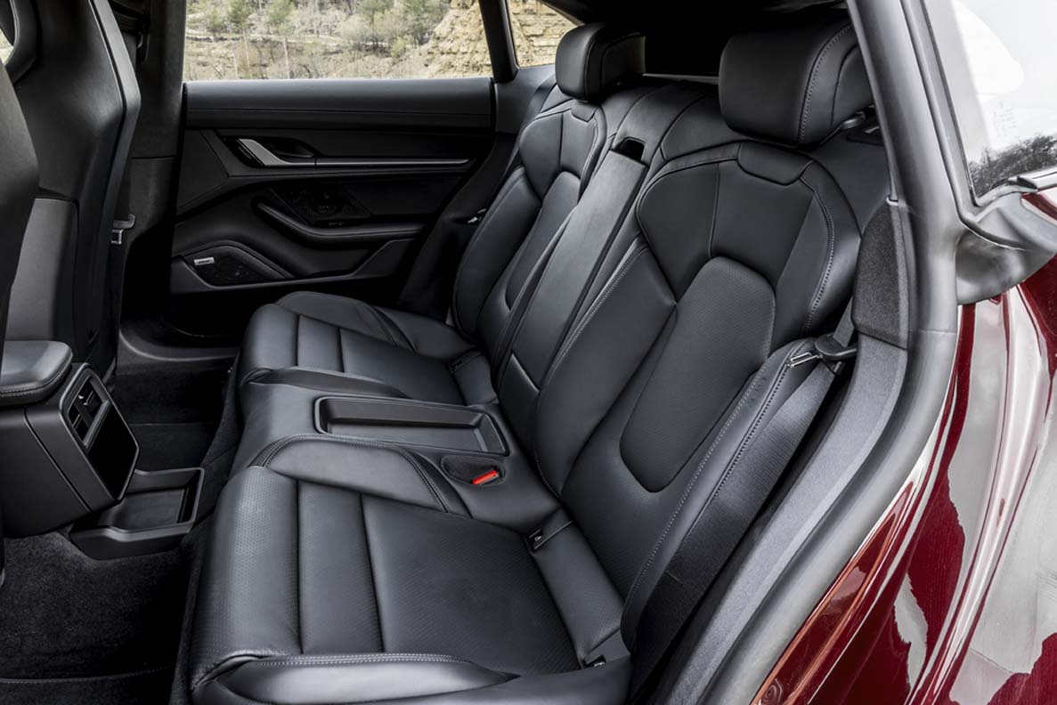 Depending on the seating configuration, four or five three-point seat belts with force limiters are fitted as standard. The Porsche Side Impact Protection System consists of side impact protection elements in the doors and thorax airbags that are integrated in the side bolsters of the front seats. The side protection system is rounded off by curtain airbags covering the entire roof frame and side windows from the A- to the C-pillar. Full-size airbags and one knee airbag each for the driver and front passenger are fitted at the front.