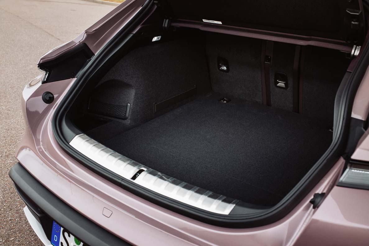 Thanks to the new model’s modified roofline, the up-to-three rear-seat passengers that the Cross Turismo can carry enjoy 47 mm more headroom than in the Taycan. The large tailgate provides easy access to the rear luggage compartment of the Taycan Cross Turismo: with a width of 776 mm and a height of 538 mm, the opening is much wider and higher than on the saloon (445 and 325 mm respectively). Depending on the equipment specified, the rear luggage compartment has a capacity of up to 446 litres (saloon: 407 l). This even increases up to 1,212 l when the rear-seat backrests, which can be split 60:40, are folded forward. The front compartment offers an additional 84 l. A partition net, bag hooks and tie-down straps (optionally available in the stowage package) ensure that the rear loadspace remains tidy.
