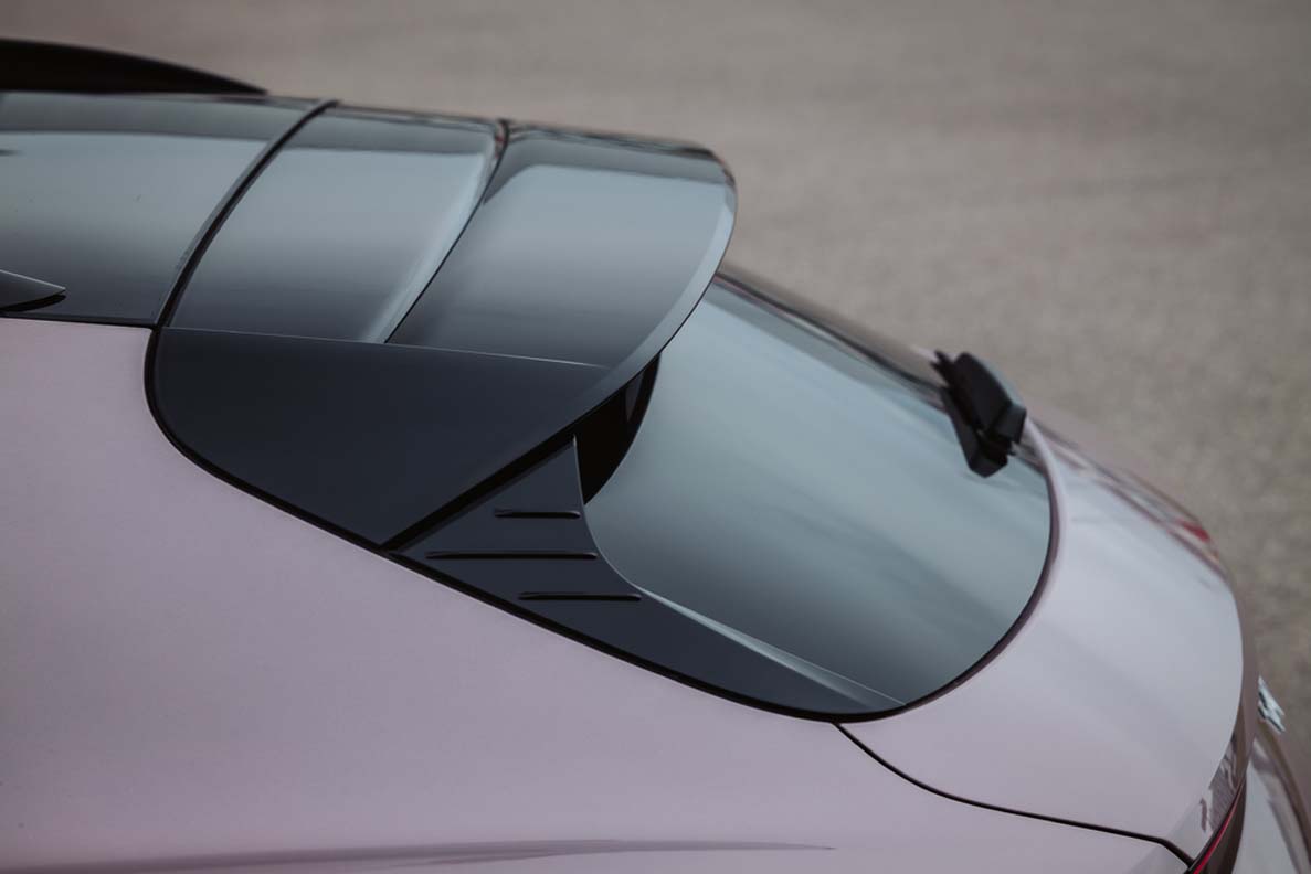 At the rear of the Taycan Cross Turismo, the aerodynamically optimised fixed roof spoiler ensures outstanding overall aerodynamic characteristics. The roof spoiler is finished in High-Gloss Black as standard.