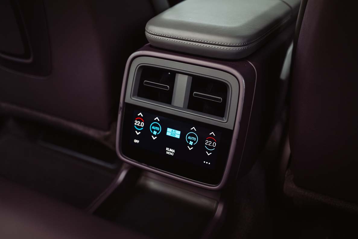 The innovative Advanced Climate Control system is a two-zone, automatic climate control system that comes as standard. If the Advanced Climate Control four-zone, automatic climate control system is ordered as an option, this can be controlled in the rear via a 5.9-inch touch display. The air-conditioning modes of both seats are individually adjustable, and operation is carried out in accordance with the Individual mode selected at the front. Depending on the vehicle specification, the seat heating in the rear can also be controlled via the display.
