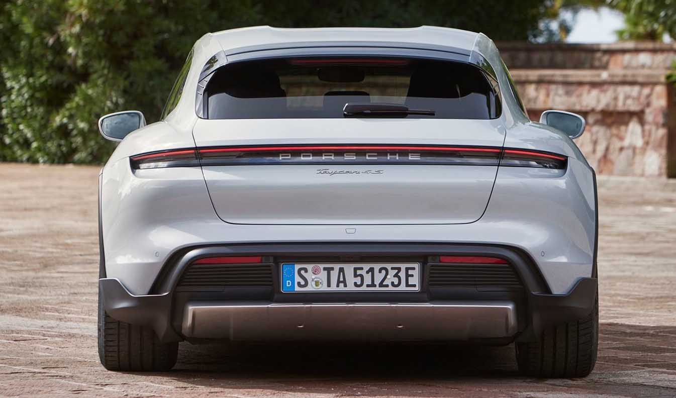 The Cross Turismo-specific rear diffuser features a louvred design and underlines the ambitions of the Taycan Cross Turismo to cut a dash both on- and off-road.