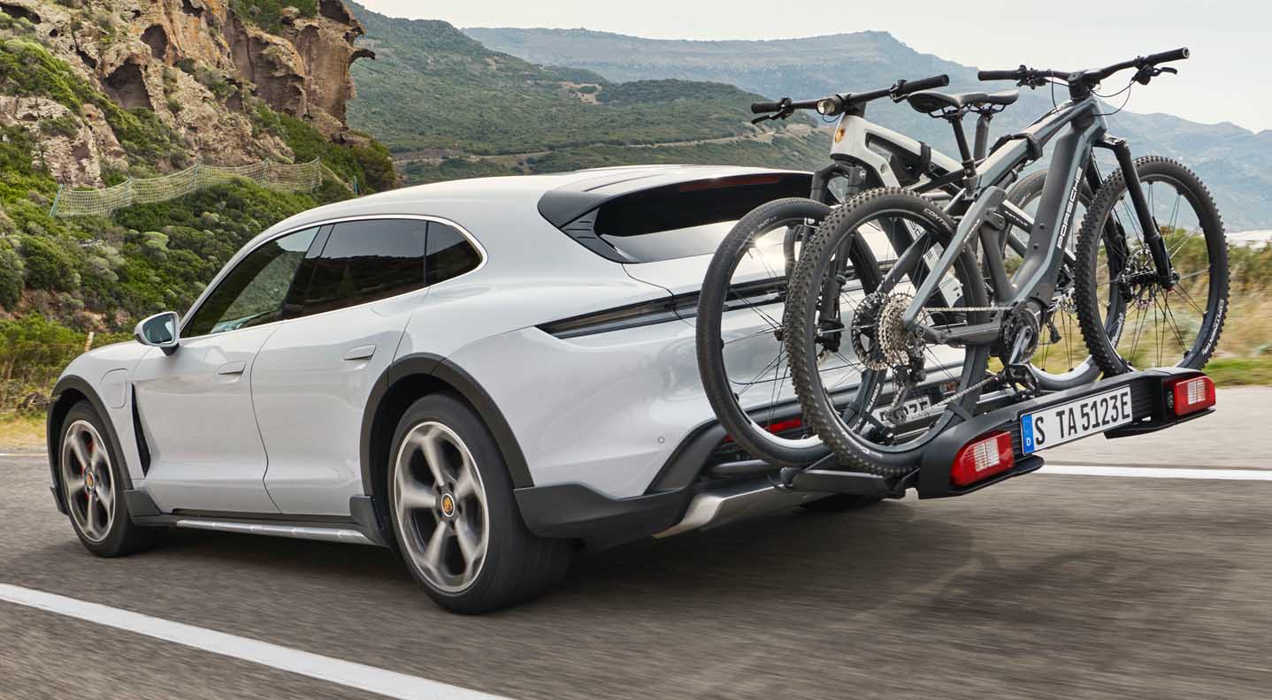Especially for the Taycan Cross Turismo, Porsche has developed a rear carrier for up to three bicycles that sets the benchmark for packaging and usability. It can be used universally for different types of bikes. One of its innovative features is that the tailgate can be opened even when the rear carrier is loaded. With the eBike Sport and the eBike Cross, Porsche is launching two high-quality e-bikes at the same time. Thanks to their timeless design as well as powerful and sustainable drive technology, they are perfectly matched to the Taycan Cross Turismo.