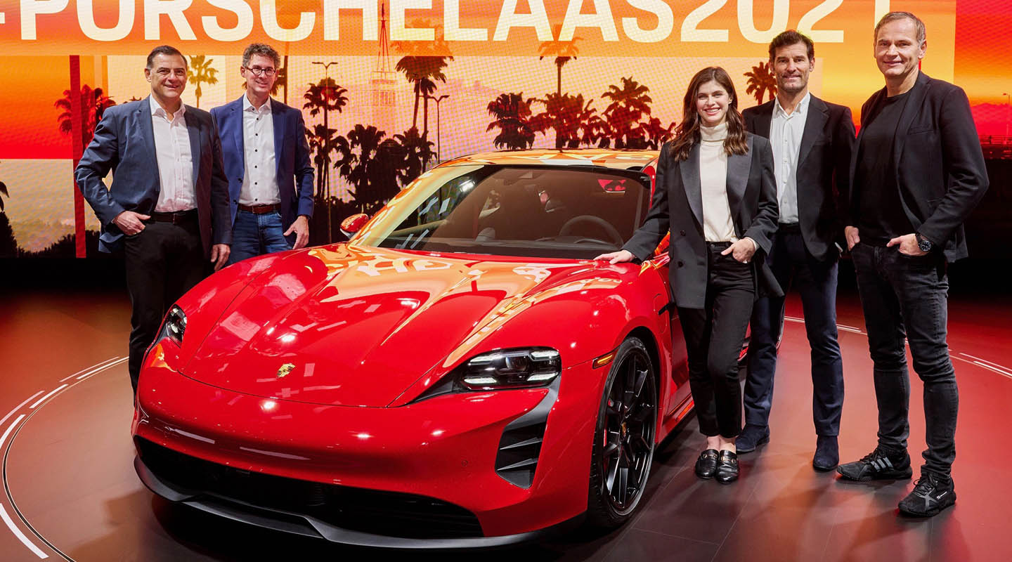 The third body version of the first all-electric Porsche model series also made its debut at the 2021 LA Auto Show, in the form of the Taycan GTS Sport Turismo. The newcomer shares its sporty silhouette and rearward-sloping roofline with the Taycan Cross Turismo.