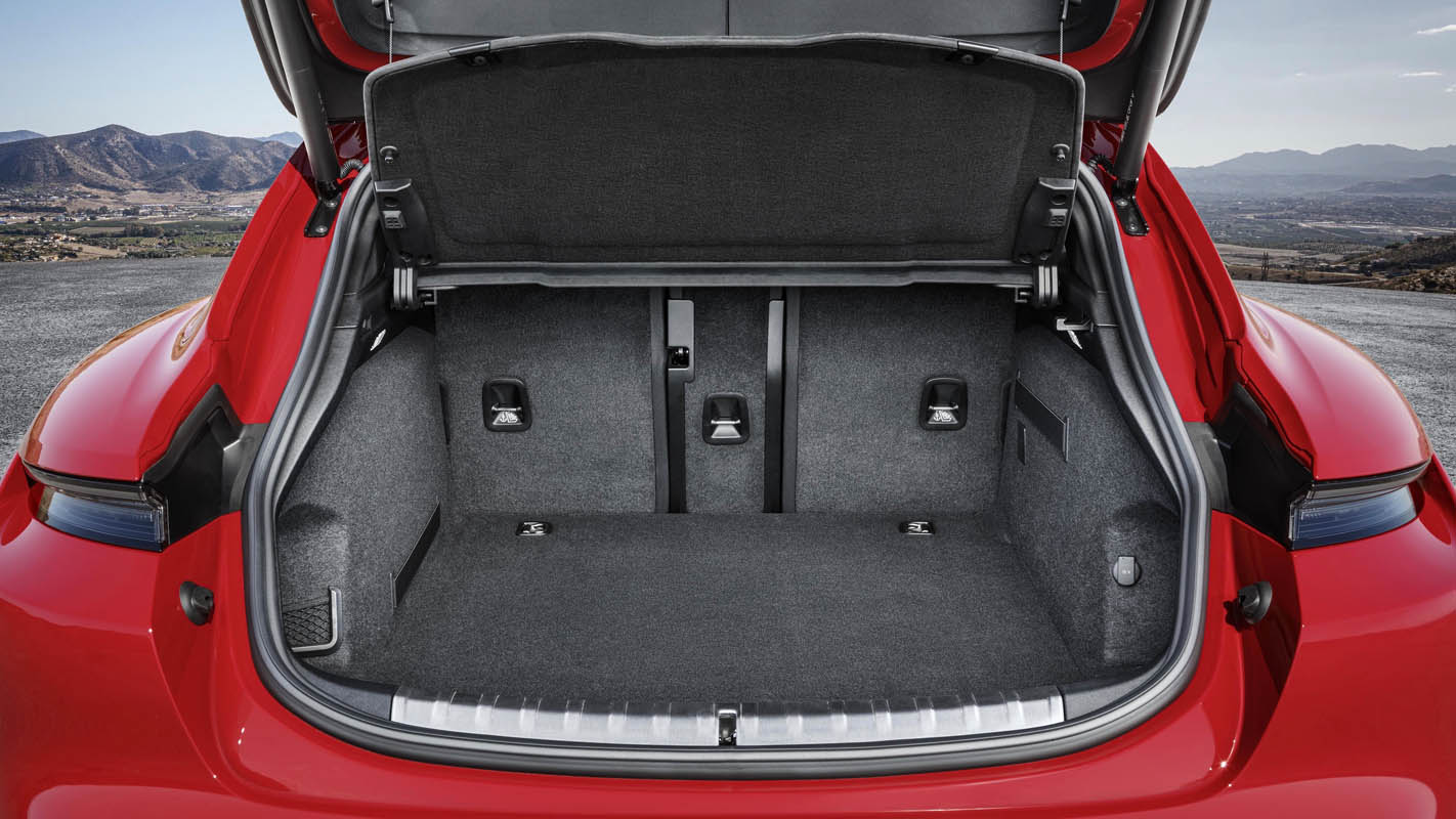 The Taycan Sport Turismo shares the sporty silhouette, the rearward-sloping roofline and the functional design of the Taycan Cross Turismo. The headroom in the rear is more than 45 millimetres greater than that in the Taycan sports saloon, and the load capacity under the large tailgate is more than 1,200 litres. However, the Taycan Sport Turismo does not have off-road design elements.