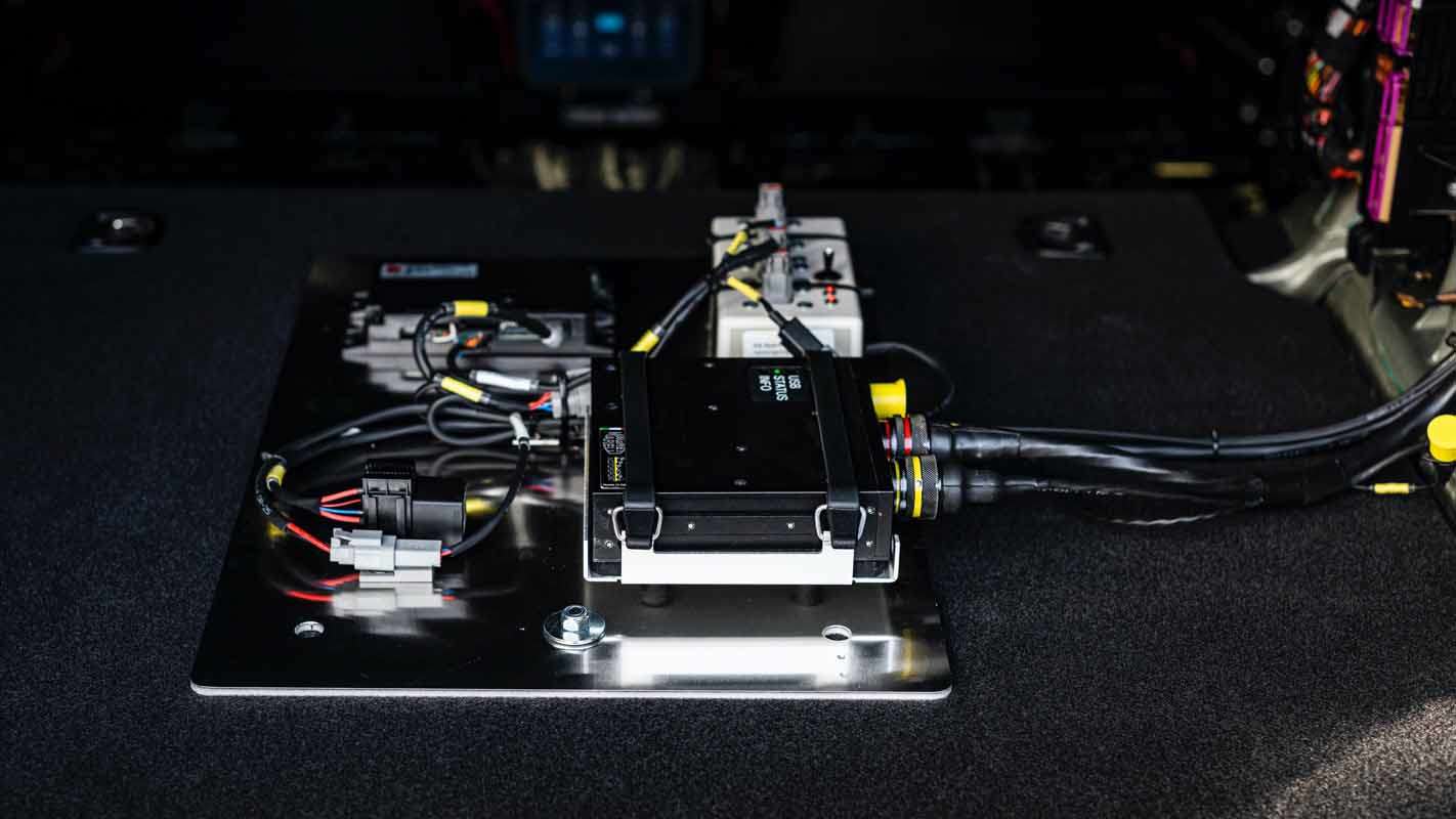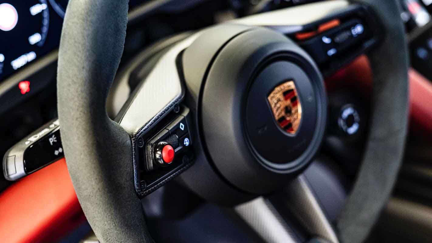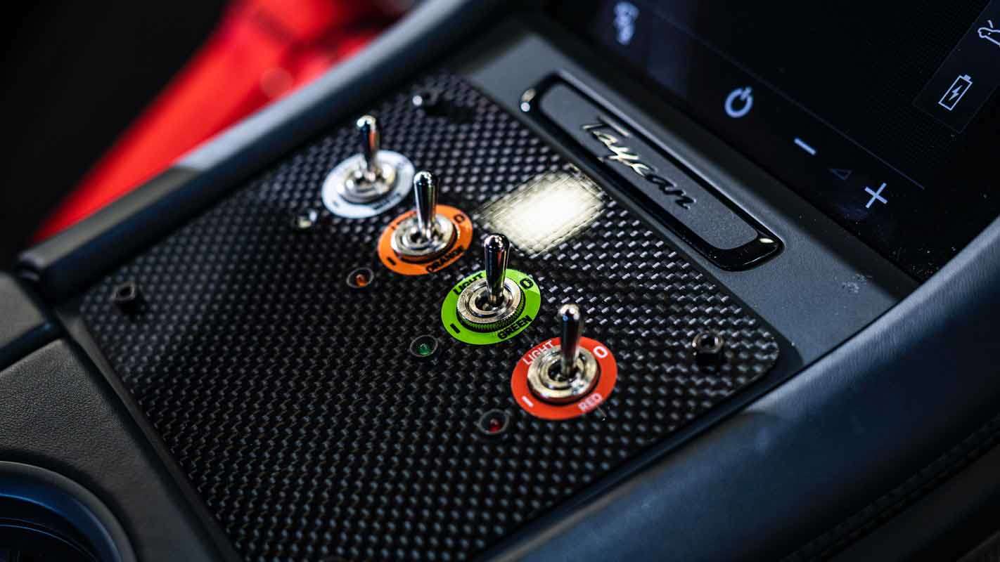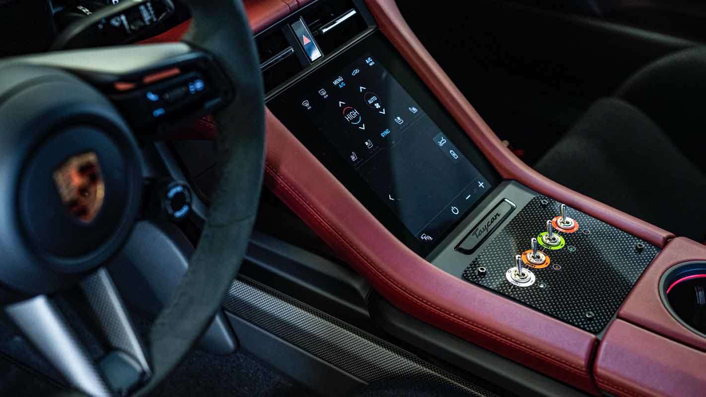 The conversion of the Porsche Taycan Turbo S into a safety car required the installation of a roll cage and racing bucket seats with sixpoint seatbelts as well as wire harnesses for the safety car lighting and the Marelli Logger System. Flashing lights were integrated into the bumpers. The new workplace of Bruno Correia (Portugal), the long-standing FIA Formula E safety car driver, was also equipped with a fire extinguisher and a high-tech communication system. As a result, the safety vehicle meets all requirements for service in a highly competitive series such as the ABB FIA Formula E World Championship.