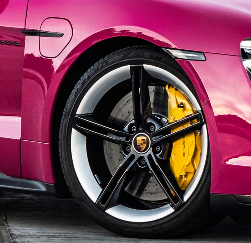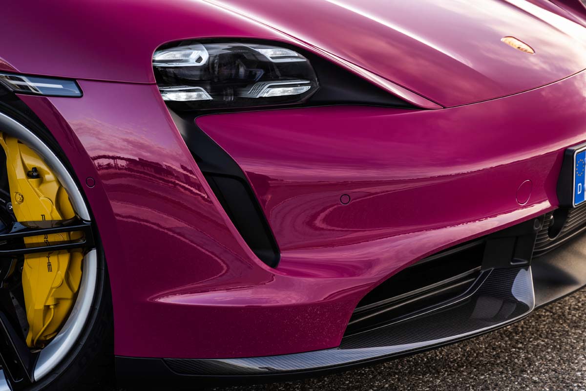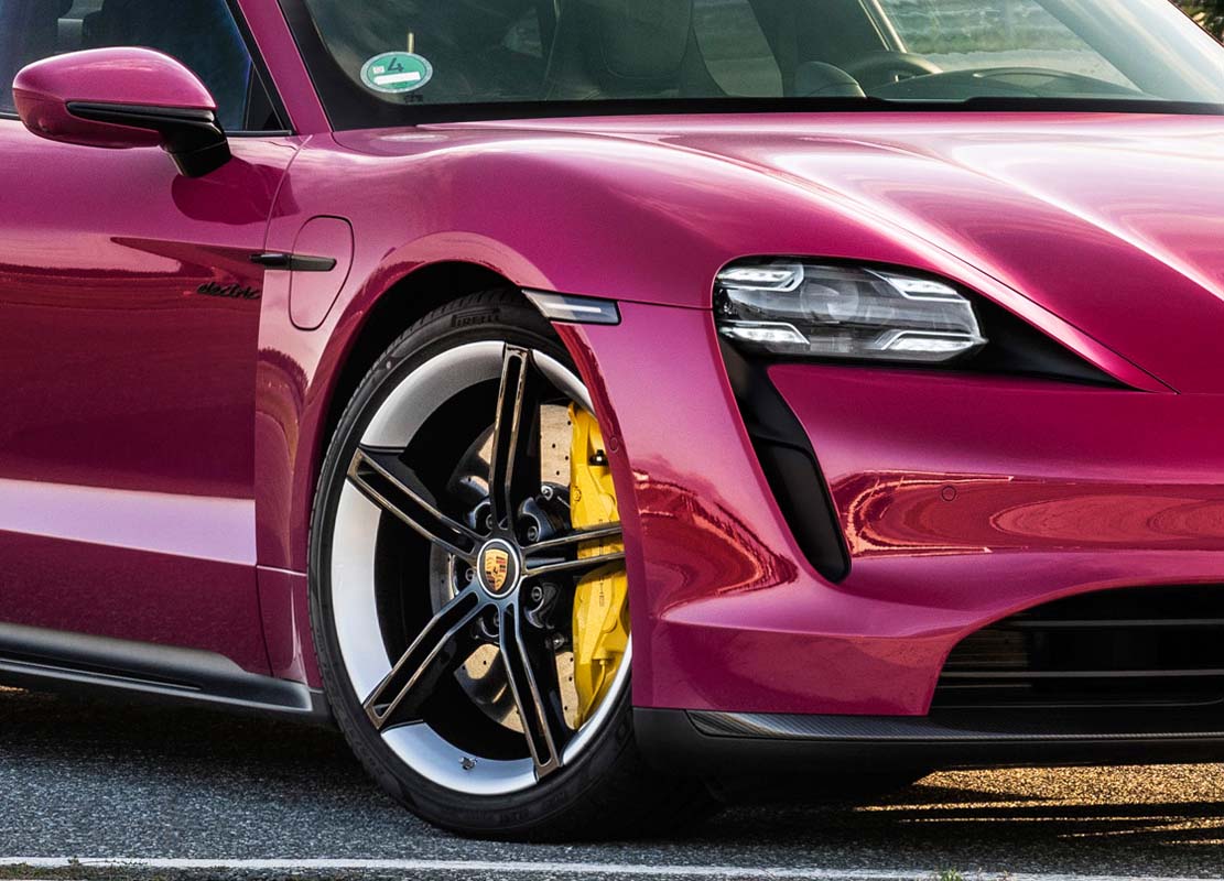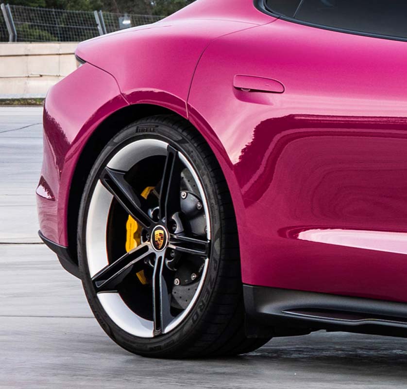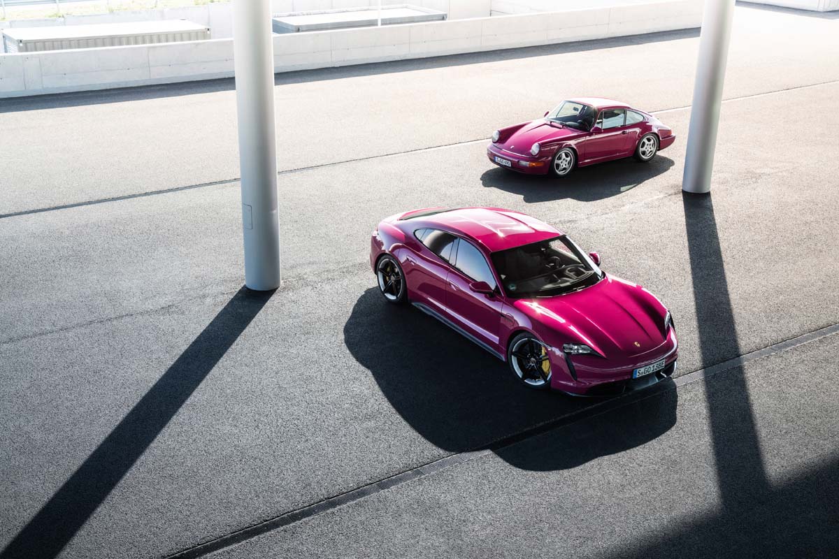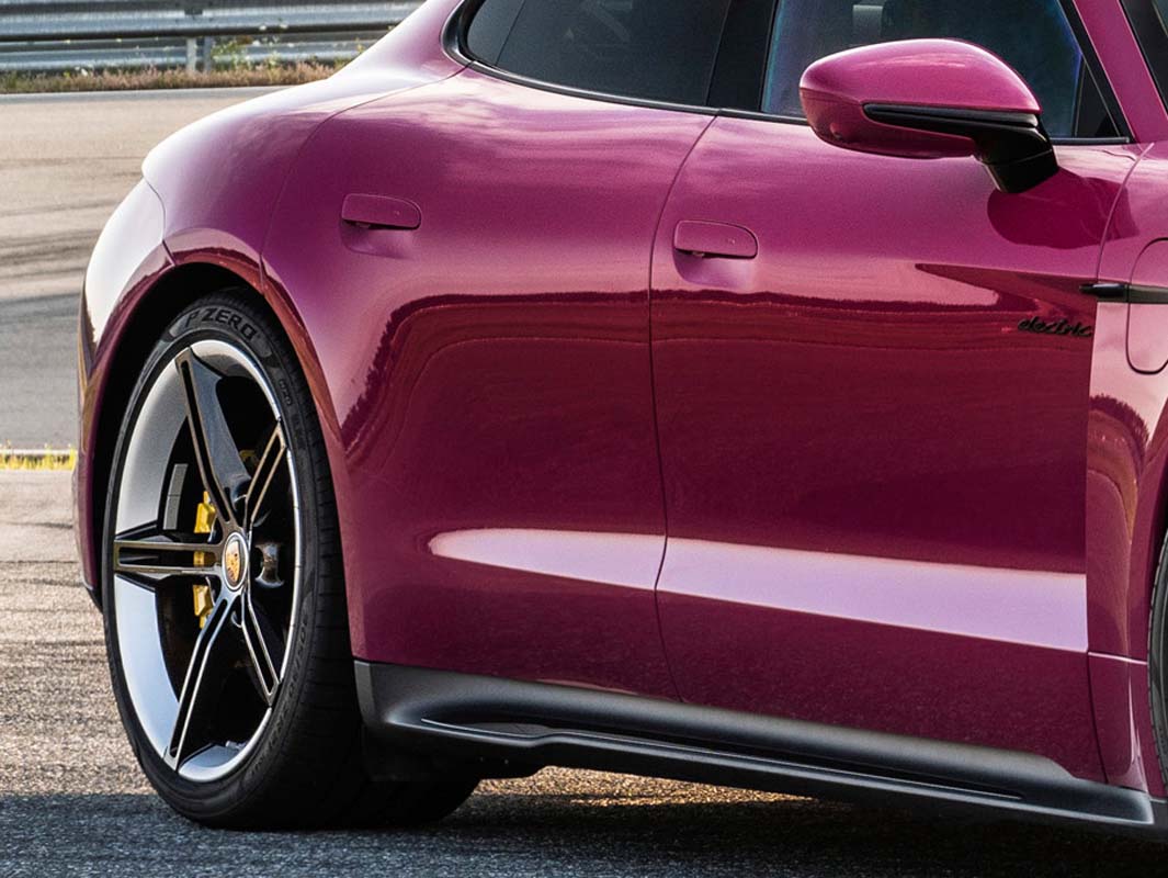 In the ‘90s, Porsche introduced a number of highly colourful paint finishes to its range. These quickly achieved cult status among fans of the brand and are especially popular today on classics like the 964-generation cars. These eye-catching colours are now making a comeback. As part of the continually developing personalisation strategy of Porsche Exclusive Manufaktur, the Taycan is now also available with Paint to Sample and Paint to Sample Plus in addition to 17 standard paint colours. The first option allows painting with 65 additional colours, at present. This includes the Moonlight Blue Metallic, Acid Green, Rubystar Red, Riviera Blue and Viola Metallic colours that are so characteristic of the brand. Paint to Sample Plus gives customers almost complete freedom in their choice of colour, permitting them to match their Taycan to their favourite accessory.