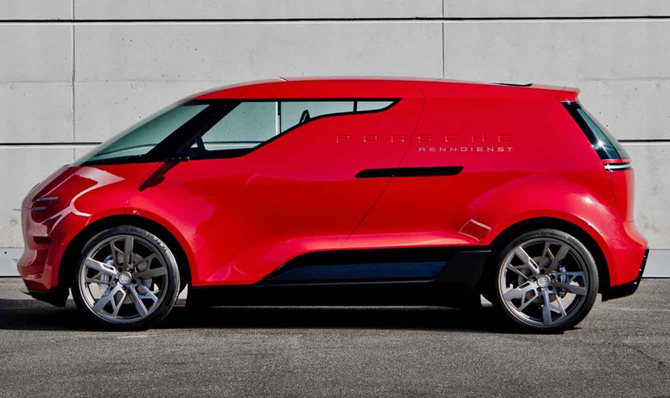 In the book Porsche Unseen, the sports-car manufacturer recently published fifteen previously secret design studies. Among them is the vision Renndienst. In its name, the van, which can carry up to six people, bears a reminiscence of the VW racing service van that once served the factory racing team as a service vehicle. On the outside, it’s futuristic and edgeless—on the inside, it’s a modular travel cabin.