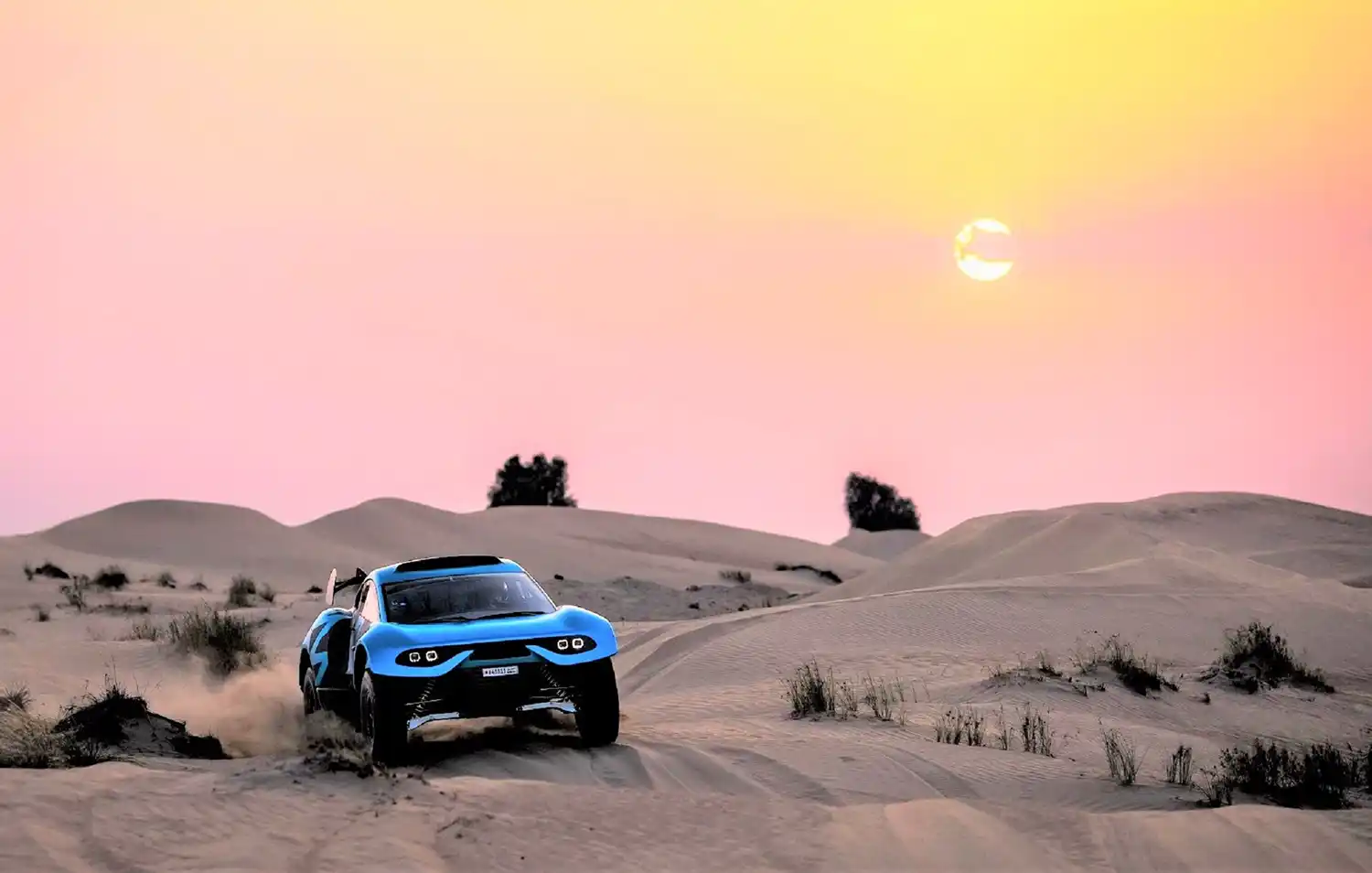 While Sebastien Loeb goes all out in his rally Hunter to win the event for Bahrain Raid Xtreme, the street legal hypercar will show its prowess to invited customers across the same dramatic desert landscape, and on the roads leading there.
