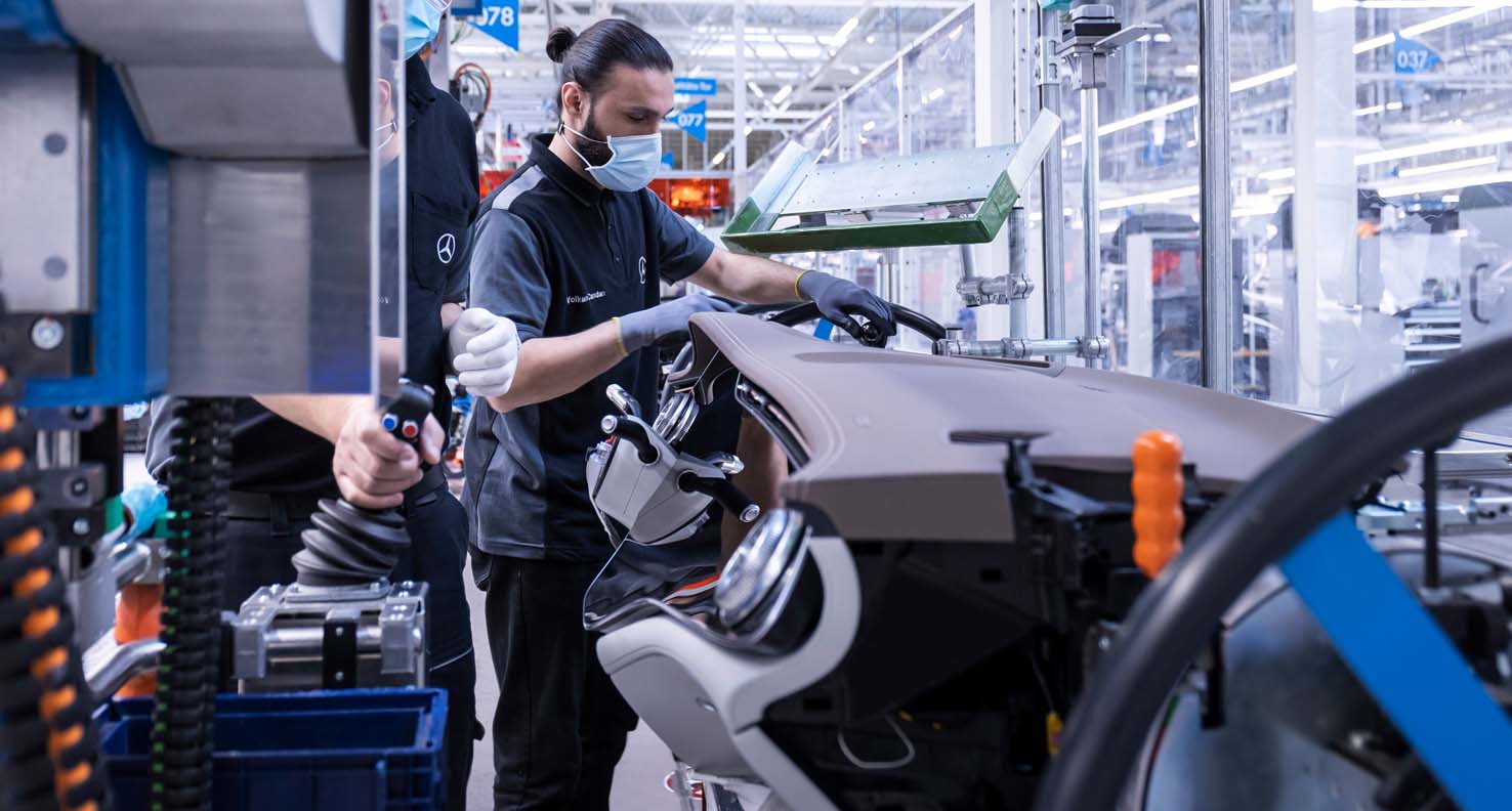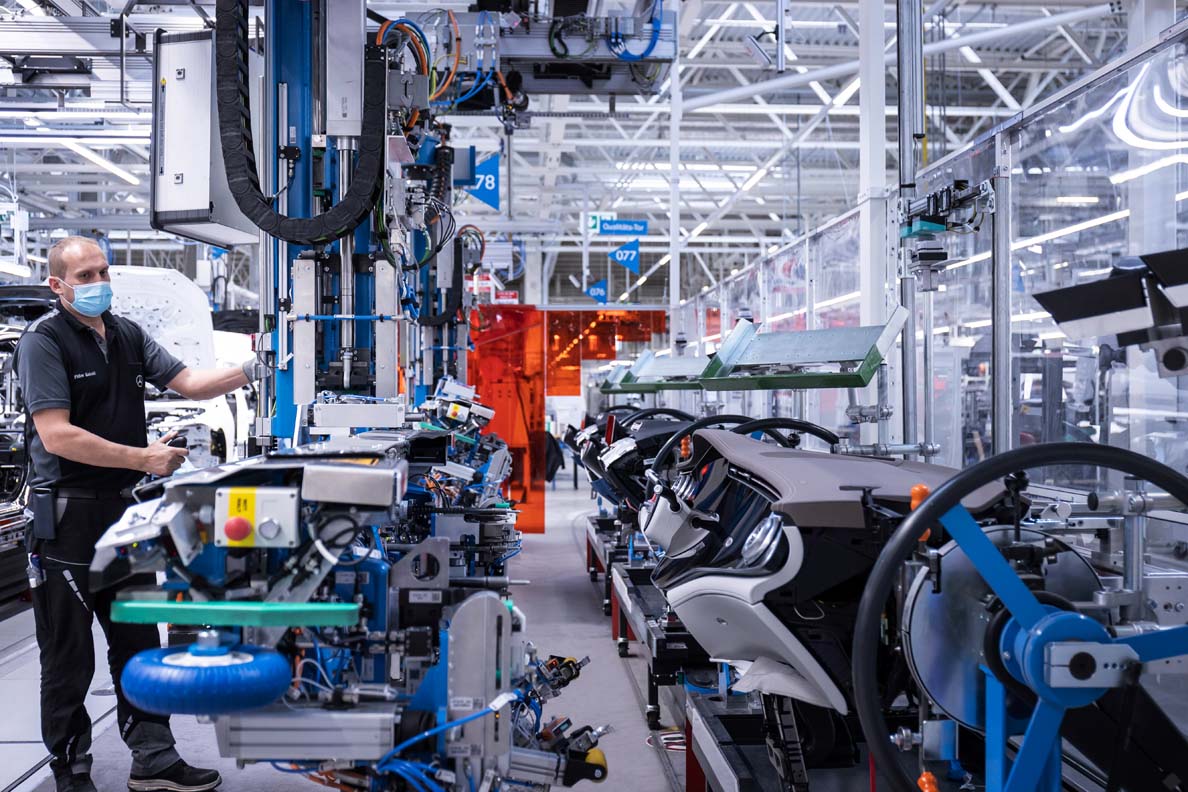 A new definition of luxury meets the future of production at Mercedes-Benz: production of the EQS electric saloon started at Factory 56 in the Mercedes-Benz Sindelfingen plant – flexible, digital, efficient and sustainable. The EQS is integrated into ongoing series production at the site as the first all-electric model. The Mercedes-Benz S-Class saloon, the long-wheelbase version and the Mercedes-Maybach S-Class are already rolling off the production line at Factory 56.