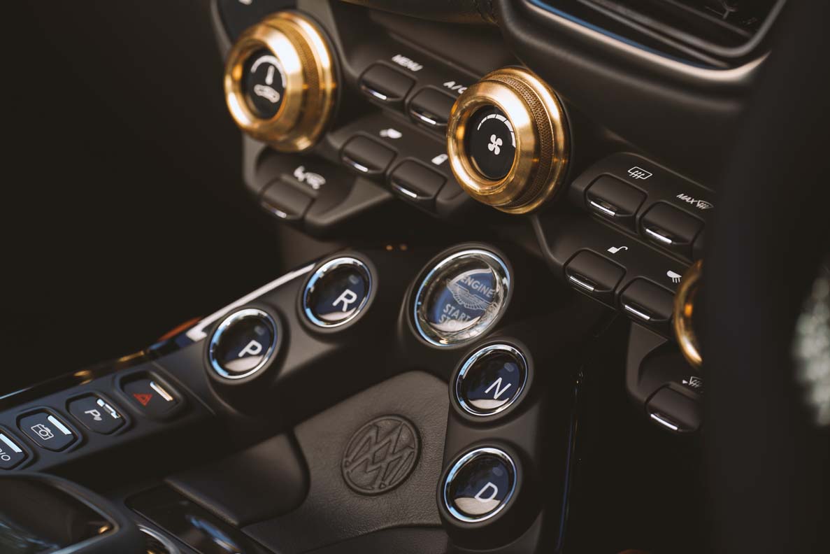 Taking inspiration from the brass features seen throughout the ‘A3’s interior, are the Vantage Roadster’s bespoke rotaries. These have been specially cast from brass to create a heritage ambience, while on the centre console is an embossed period correct heritage Aston Martin logo.