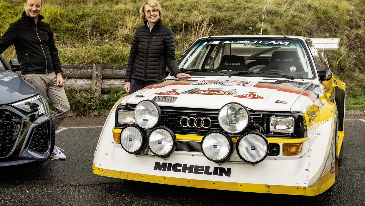 They are historic venues for the international rally scene and they have close ties to Audi: the Col de Turini as a stage of the Monte Carlo Rally and San Romolo as a very crucial point of the asphalt special stages of the Rallye Sanremo. Thanks to the quattro and the five-cylinder, the company with the four rings drove from one success to another in the 1980s. It was an era that established the legend of what was then Audi’s revolutionary drive concept and technologies that define the Audi DNA “Vorsprung durch Technik” to this day. Fabrizia Pons, co-driver for Audi factory driver Michèle Mouton in the 1980s, and Sebastian Grams rhapsodize about the old days and look forward at the possibilities that the quattro and the five cylinder offer today and in the future.
