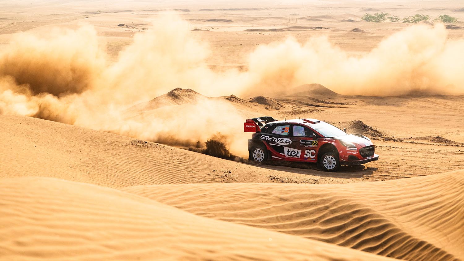 Sesks won the second pass of Um Al Jerem with an eight-second margin. Rovanperä ended the day with a stage win, consolidating his position in the top five.