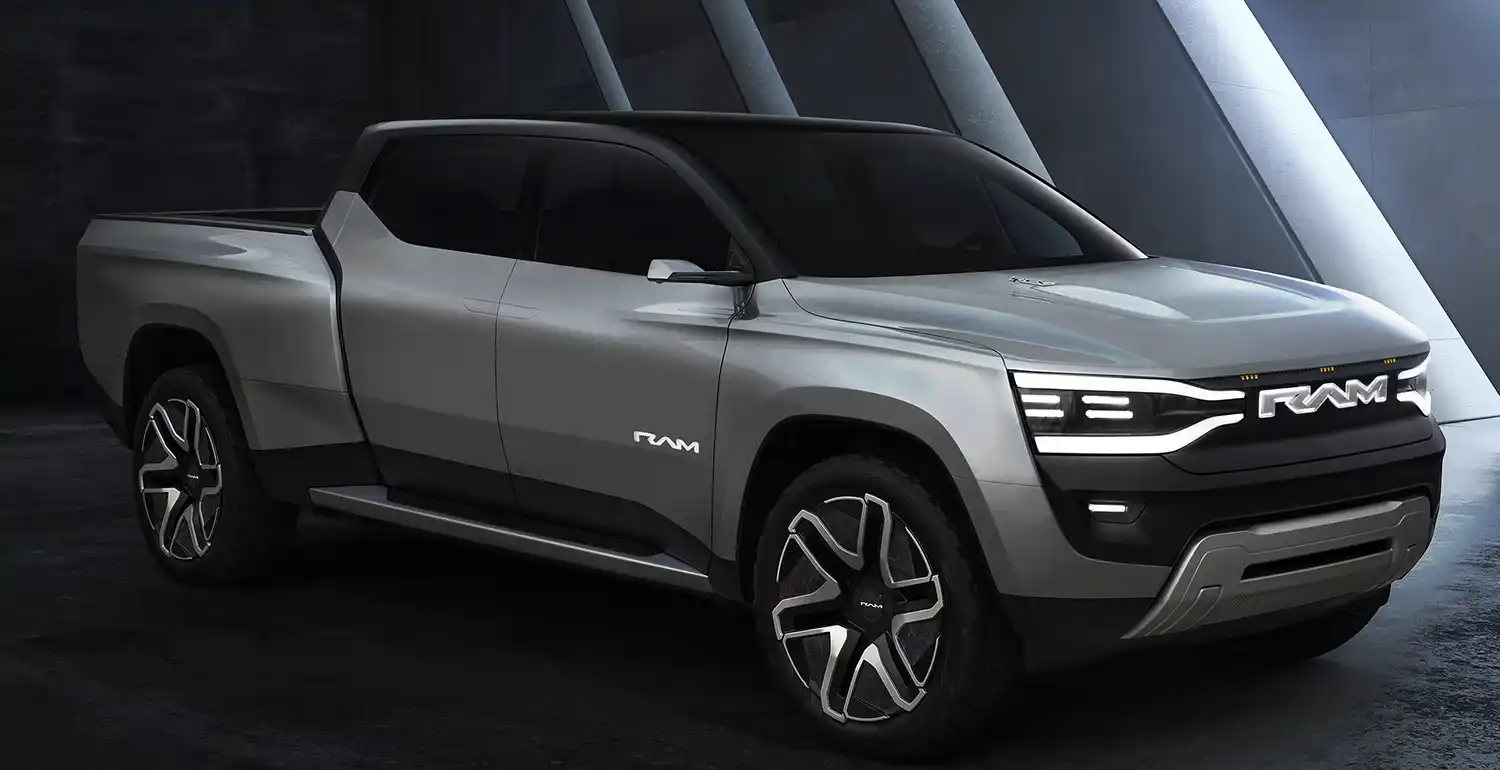 The Ram 1500 Revolution BEV Concept can add up to 100 miles of range in approximately 10 minutes with 800-volt DC fast charging at up to 350 kW.