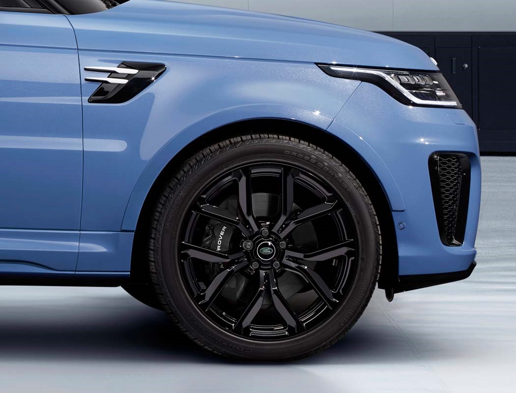 A body-coloured carbon fibre vented bonnet, 22-inch five split-spoke forged alloy wheels and black brake calipers reinforce the Ultimate edition’s strong presence, complementing the SVR’s Narvik Black contrast roof, door mirror caps, front grilles and grille surrounds, front wing detail and tailgate finishers.