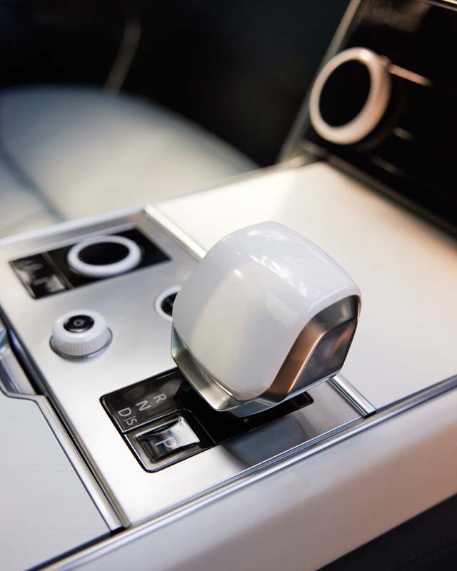 Luxurious details are found throughout the cabin of the Range Rover SV Carmel Edition. The four-seat SV Signature Suite is the pinnacle of design and luxury. It is centered around an elegant front-to-rear console that runs the full length of the cabin and accommodates an electrically powered Club Table, electrically deployable cupholders and an integrated refrigerator with SV-etched Dartington Crystal glassware. Additional interior elements include Gloss White ceramic controls and Satin White ceramic finishers with embossed mosaic.