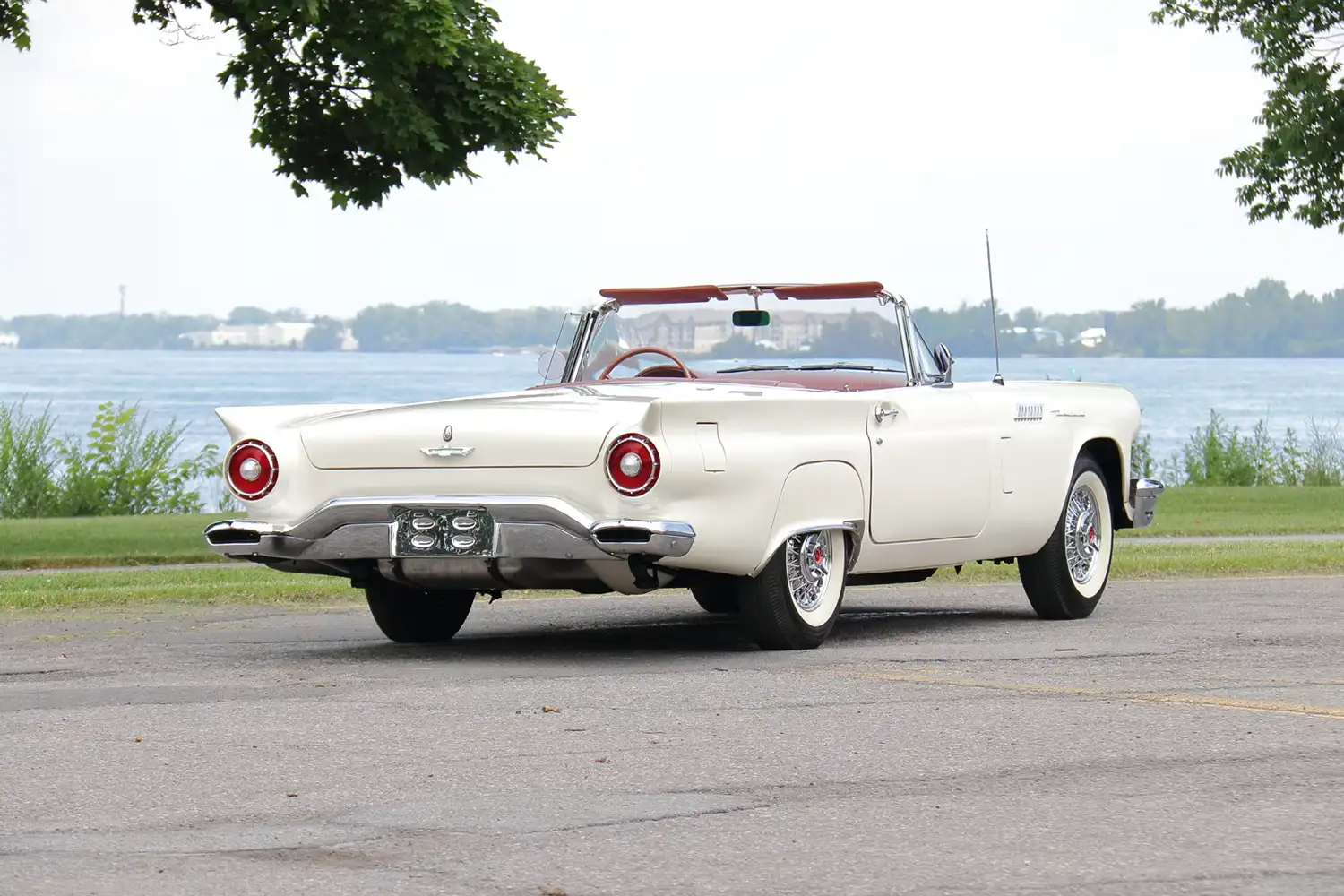 What makes this Thunderbird truly special is its rarity. It is one of only 1,499 E-Code models produced in 1957. This limited production run makes it a highly sought-after collector’s item. The car comes with a factory engine dress-up kit and dual 4-barrel carburetors, enhancing its performance and appeal.