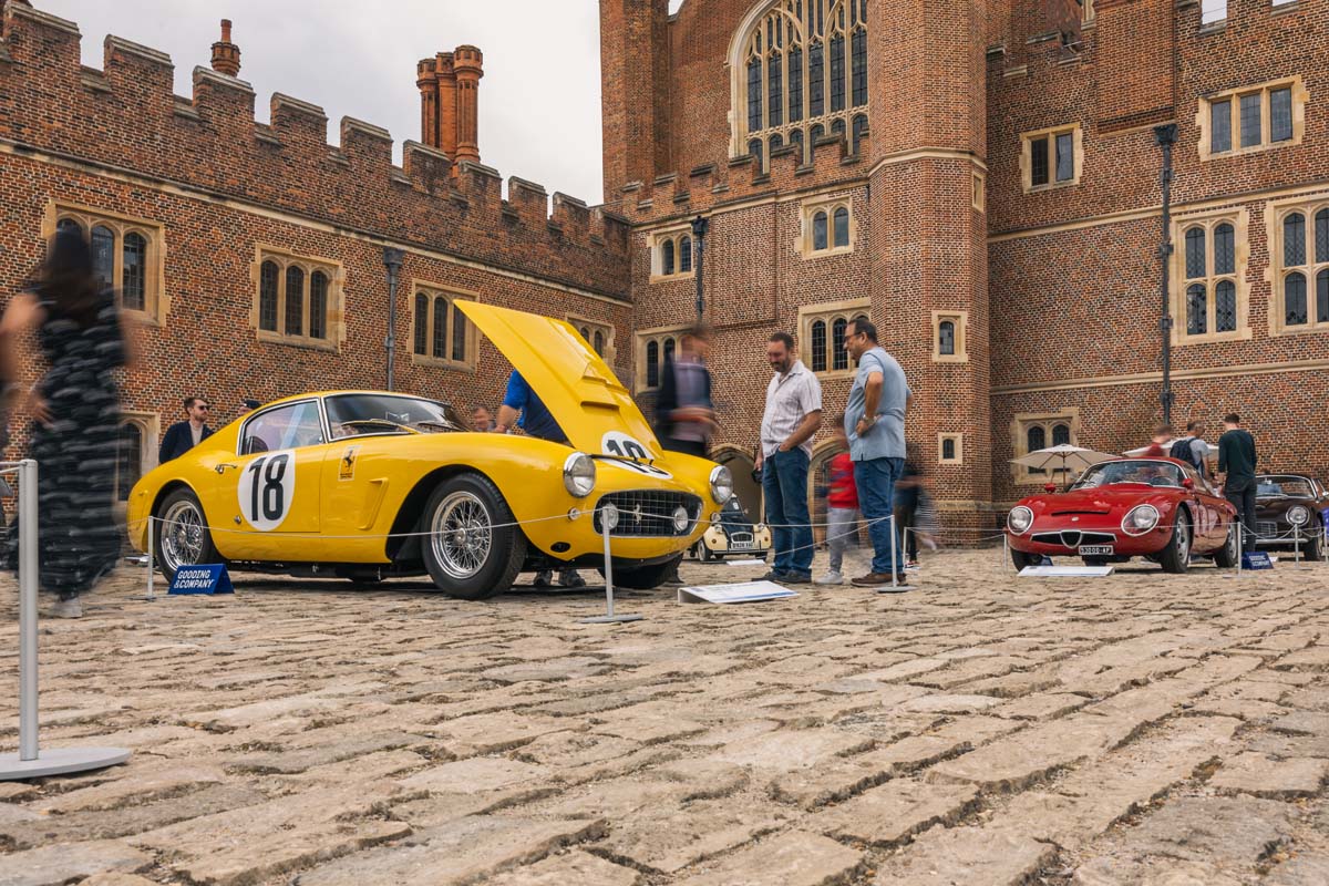 Gooding & Company’s London collector car auction, held alongside the main Concours in the Palace grounds, also brought significant excitement. Stunning lots from all eras were evocatively displayed in the Hampton Court Palace’s inner courtyards ahead of Saturday’s highly successful sale.