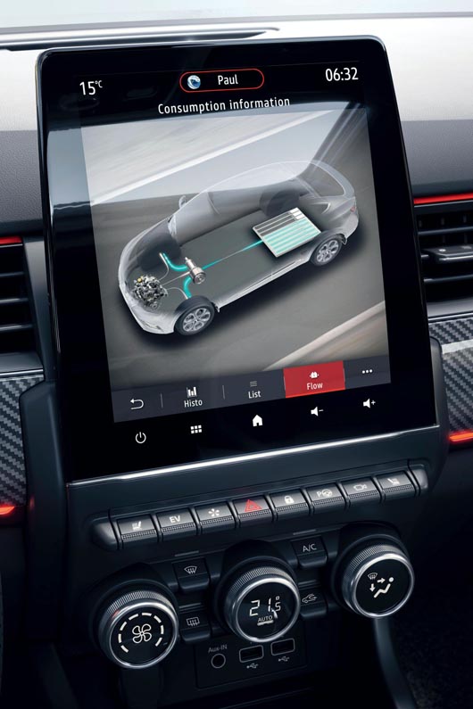 The hybrid technology is based on a revolutionary solution that has been the subject of more than 150 patents and draws on Renault’s expertise in Formula 1 racing, particularly in terms of energy recovery and regeneration. The E-TECH Hybrid engine is based on hybrid architecture called ‘series-parallel’. It brings multiple advantages: it offers the maximum number of operating combinations between the internal combustion engine and the electric motor and maximises the reduction of CO2 emissions.