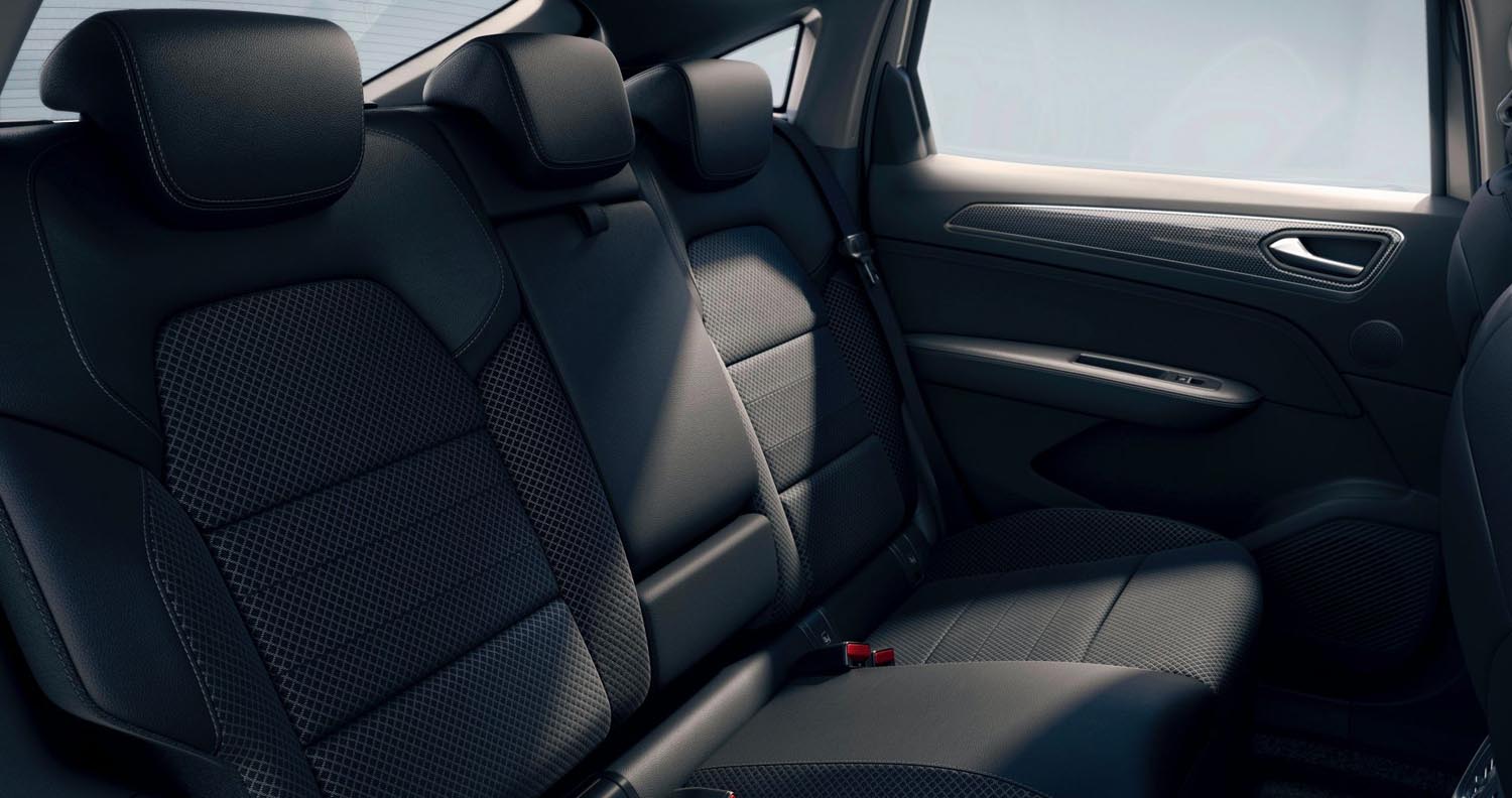 Various versions of upholstery embellish the interior of the New Renault Arkana. The first trim level offers fabric upholstery while the seats of the upper trim level are covered with a faux leather fabric (with leather as an option). The R.S. Line version features mixed leather/suede-like finish upholstery.