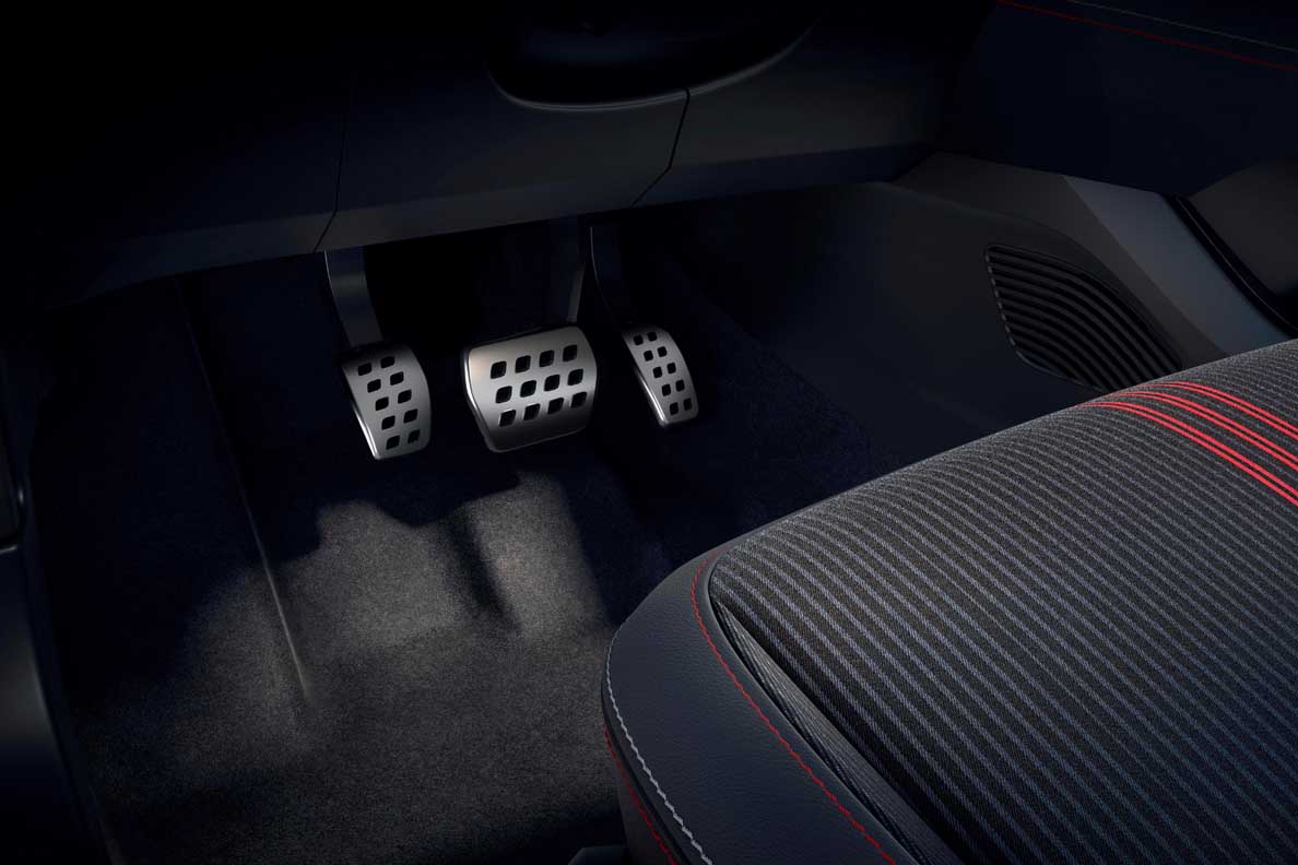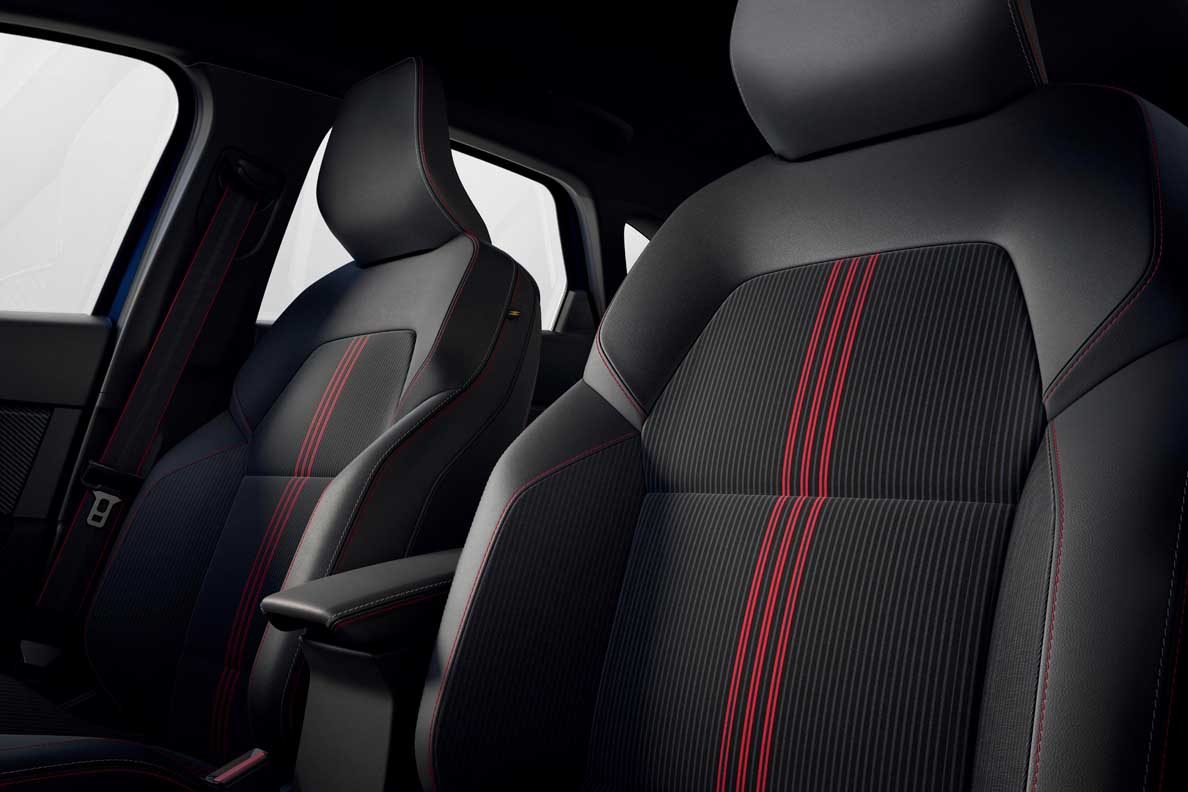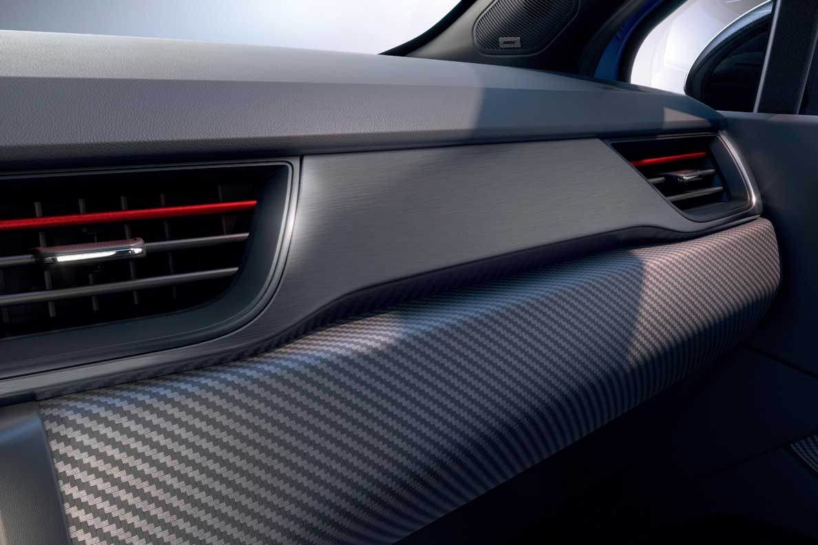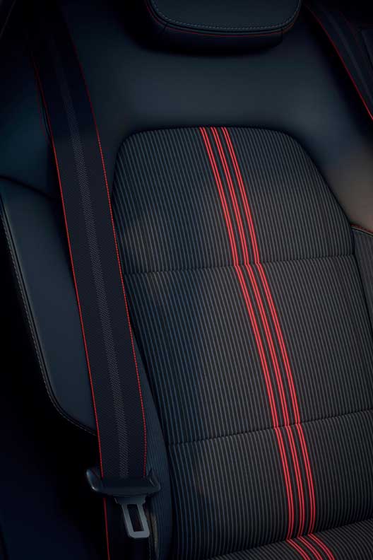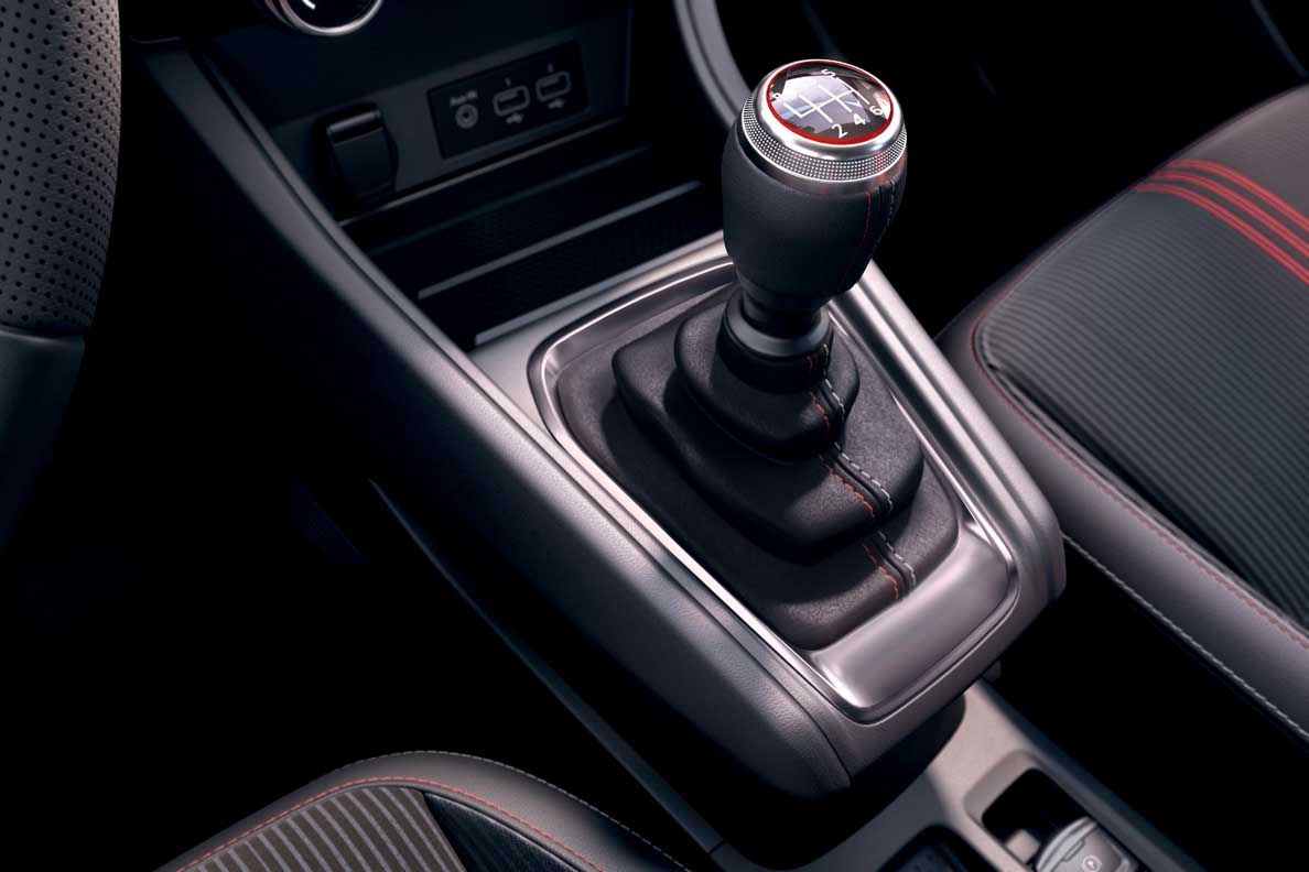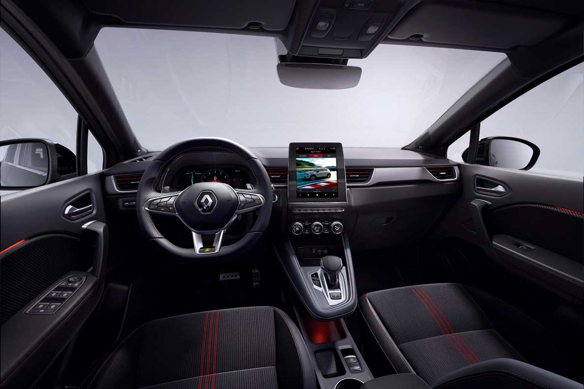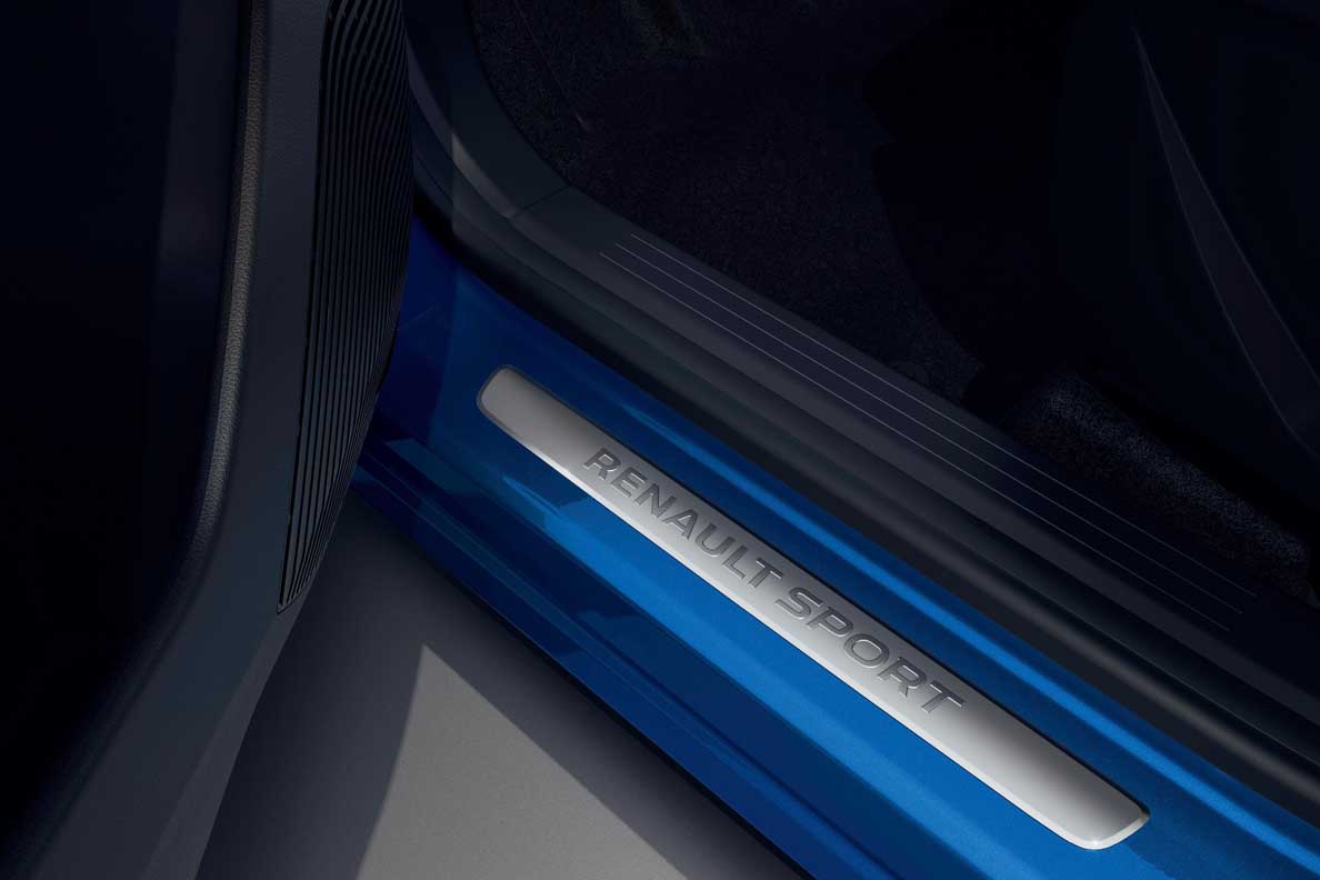 This signature can be found inside on the specific red edged upholstery and on the perforated leather steering wheel with red and grey stitching. The aluminum door sills show their Renault Sport heritage. The interior is decorated with a red line on the air vents and the dashboard, which has a carbon finish. The 10’ digital dashboard, front and rear parking aid with rear view camera, induction charger and electrochromic interior mirror are standard equipment.