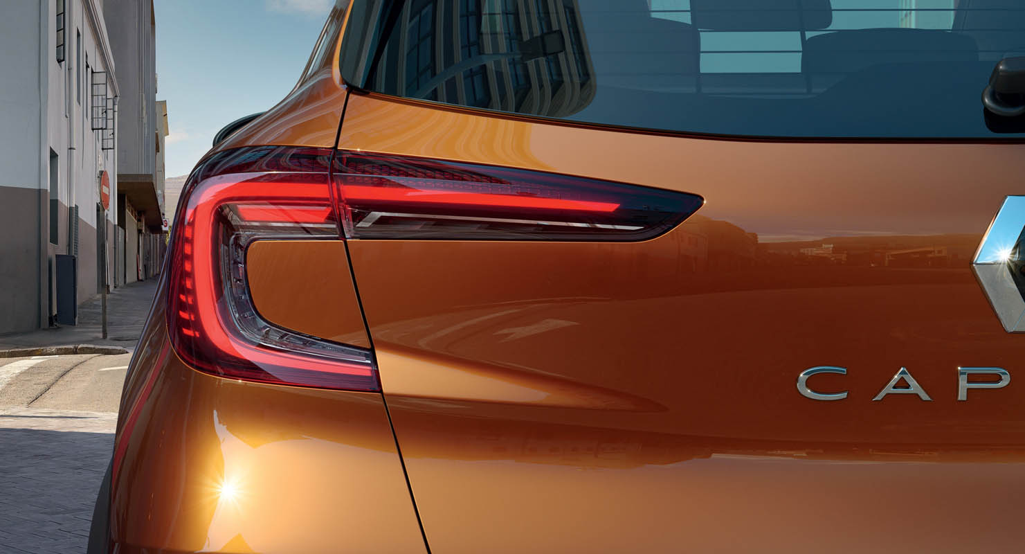 At the slim rear lights on the All-New Captur retain the C-Shape light signature that typifies the Renault vehicle. A first on a production model! As at the front, there are additional front segments (1 per light) and side segments (8 per light) to further emphasise the design, and the distinctive 3D mesh. The original design of these rear lights, mounted as they are in the tailgate panel, provide the illusion of an extra wide vehicle.