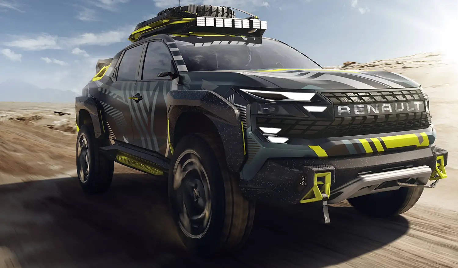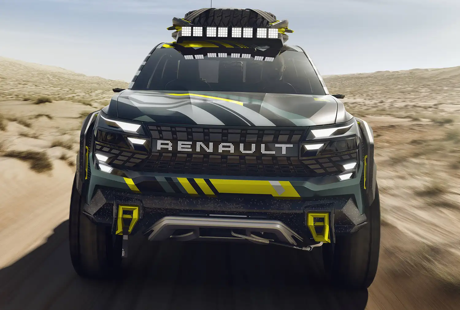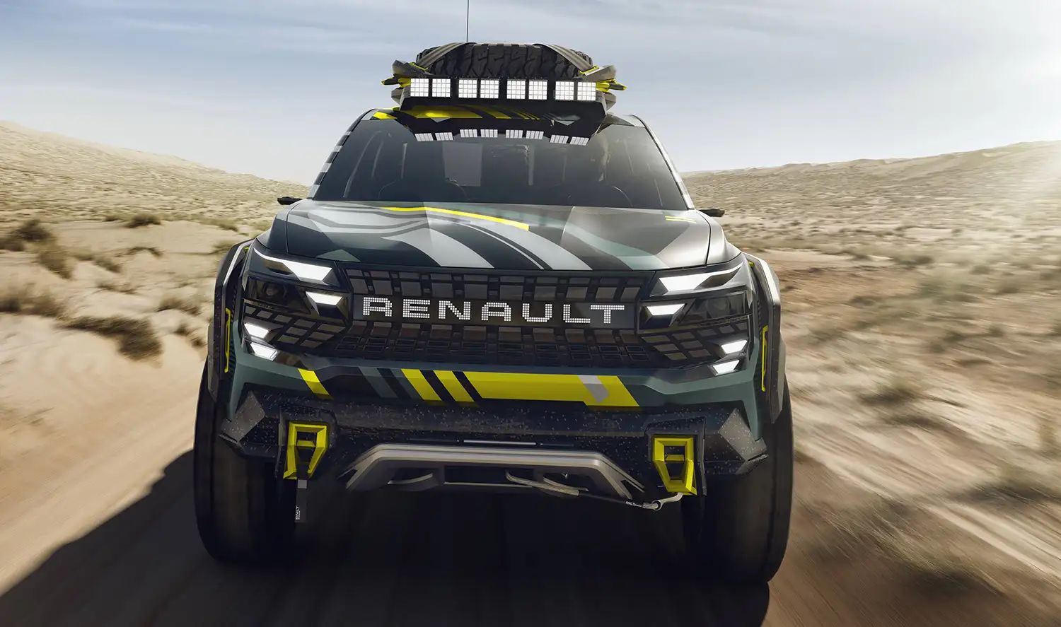 Niagara Concept is covered with a camouflage inspired by the lines and patterns of the brand’s logo. The colours underscore the vehicle’s multiple facets: the green points for adventure, yellow for its sports-car edge, light grey for technicity and the black background for power.