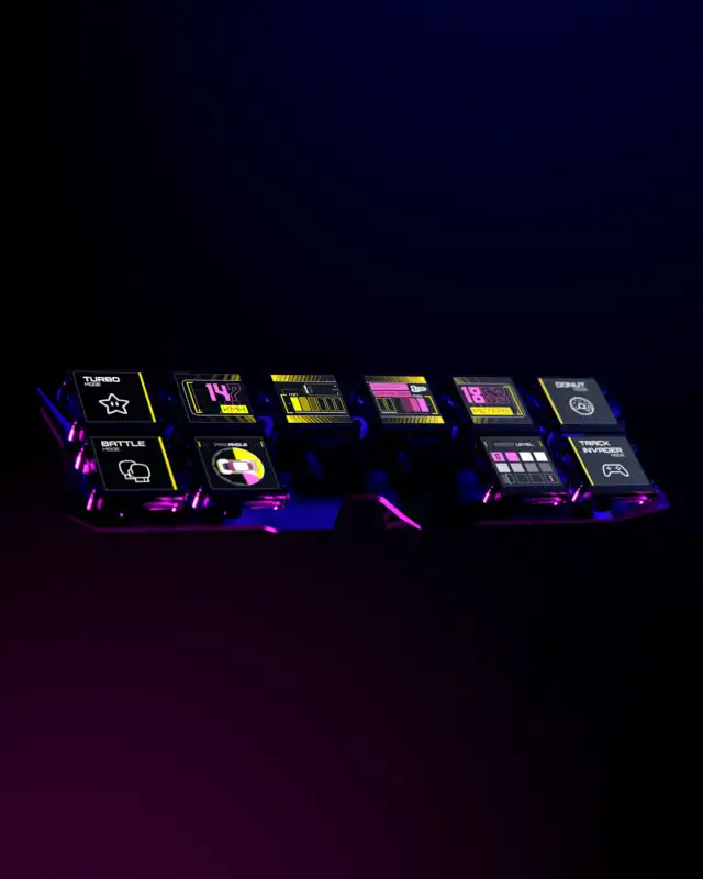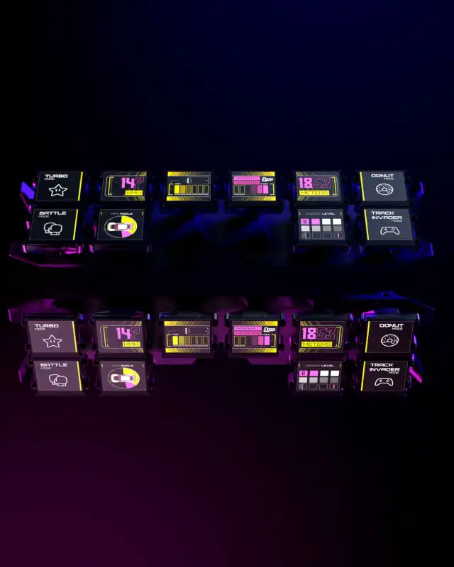 In a modern twist on one of the Renault 5 Turbo 2’s instantly recognisable features, the 10 analogue dials facing the driver have been replaced by 10 digital screens on R5 TURBO 3E’s dashboard. They work like widgets and look a lot like Pixel Art2 and Glitch Art3 , which seem to have leapt out of the retro gaming universe. For example, to start the car, you have to push the “Free play” button on the centre console. Likewise, the various driving modes have been renamed “Turbo” (for drifting), “Track invader” (for playing), “Donut” (for 360° spins) and so forth.