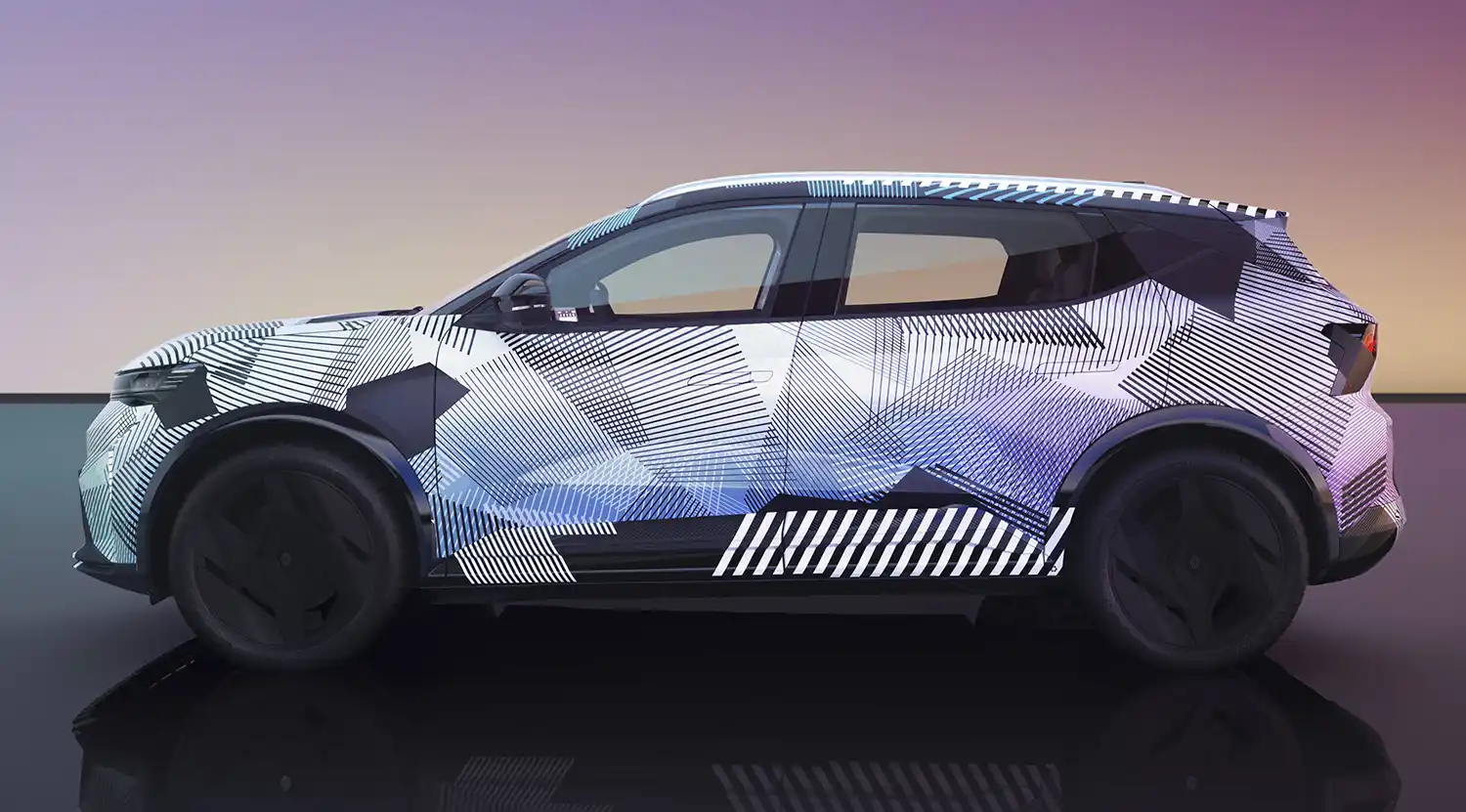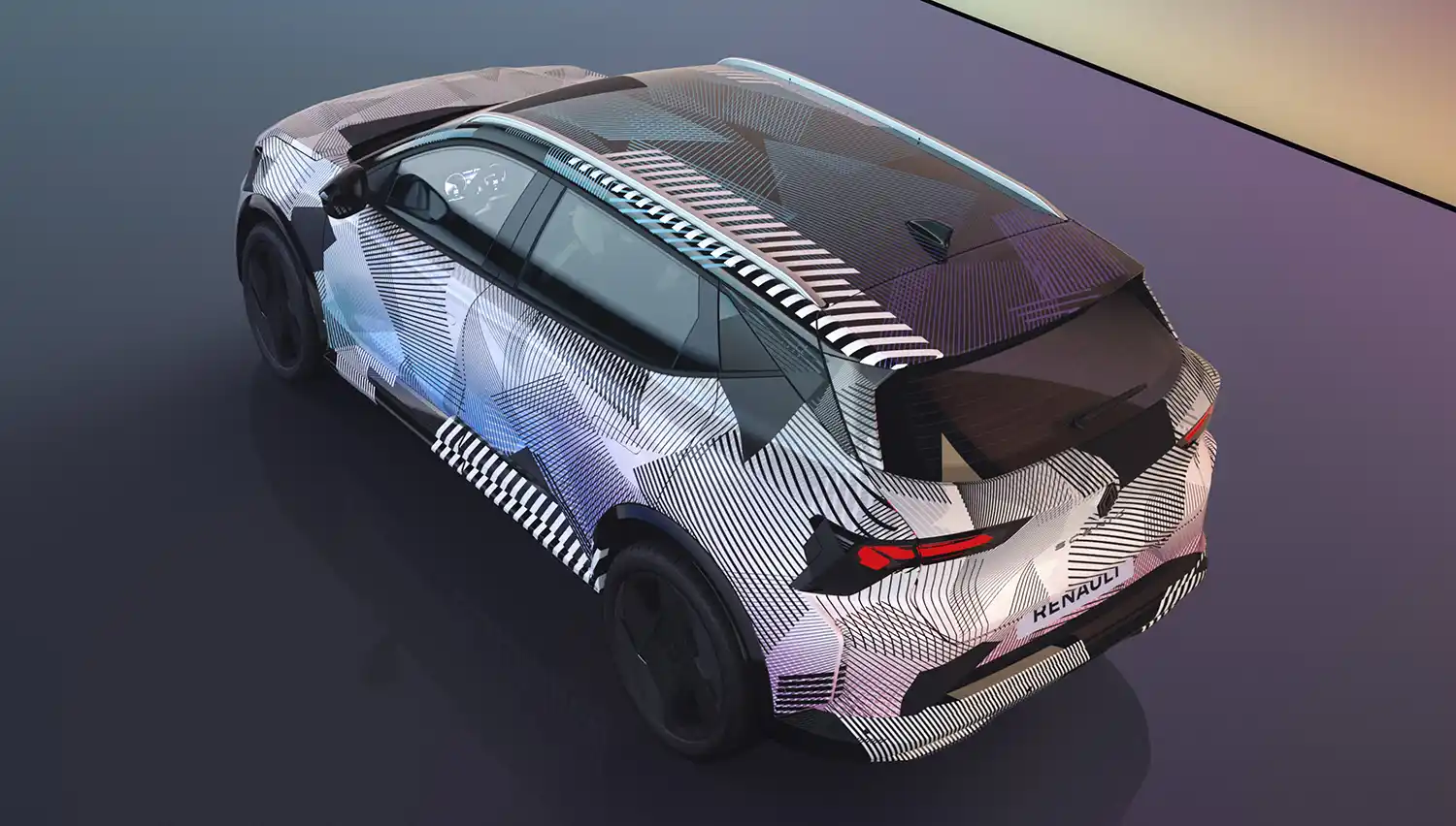 Made in the Douai ElectriCity factory, the pre-production cars will be covered with a taylor made pattern from Renault Design. Consisting in a play of lines and patterns from our iconic logo, paying tribute to the design made previously for Mégane E-Tech electric thus creating a dazzle-like camouflage.