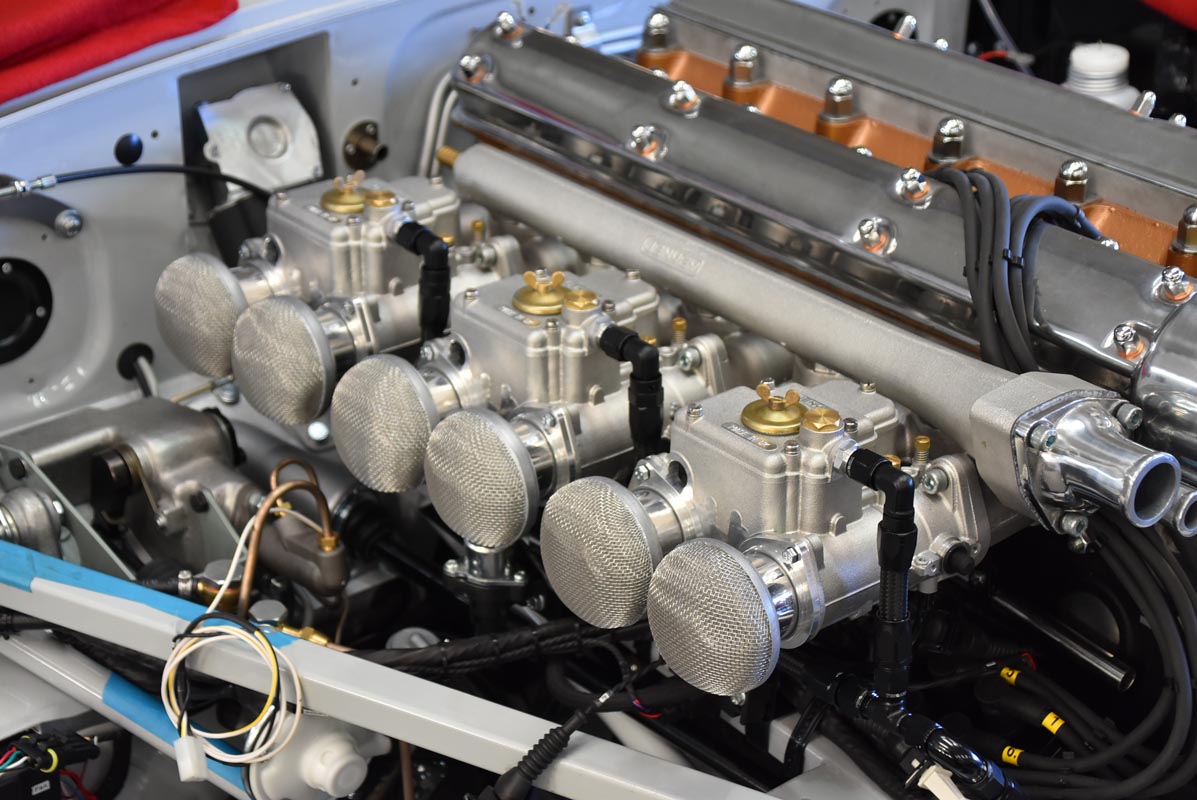 To further enhance the performance of the newly installed 3.8-litre road engine, E-Type UK’s engineers proceeded with fitting the bespoke straight-six fuel injection system, boasting heritage throttle bodies with concealed fuel injectors, retaining the period aesthetic look.